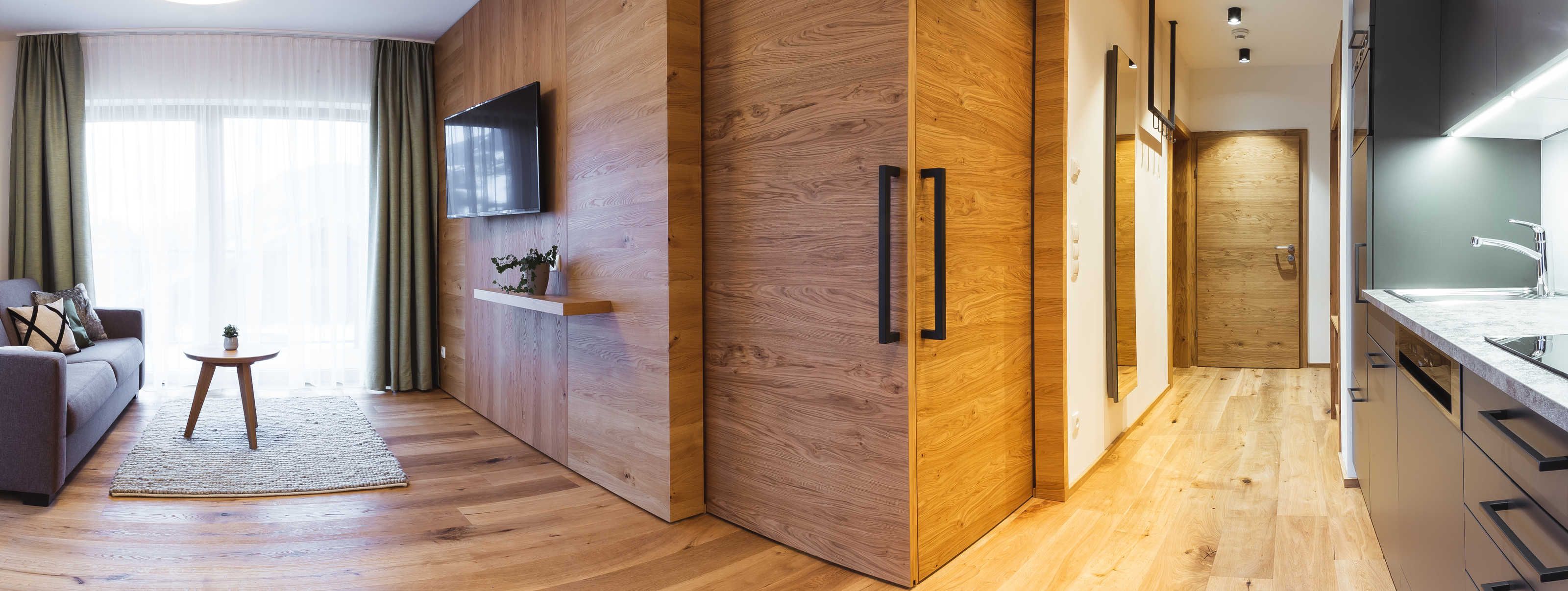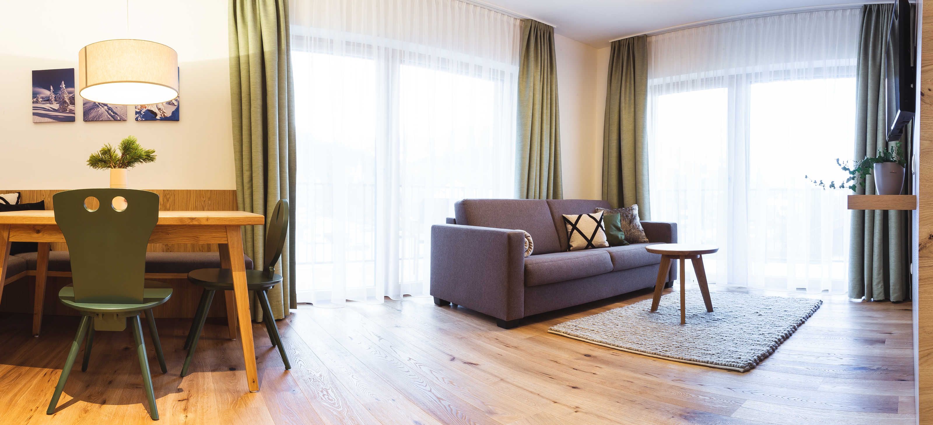 Unser Aparthotel präsentieren sich modern, großzügig und stilvoll eingerichtet. Es wurde sehr viel Wert auf die Verwendung von natürlichen Materialien gelegt. Vom Fußboden bis hin zu den Möbeln wurde ein Wohlfühl-Ambiente für ihre Zeit in Schladming geschaffen.