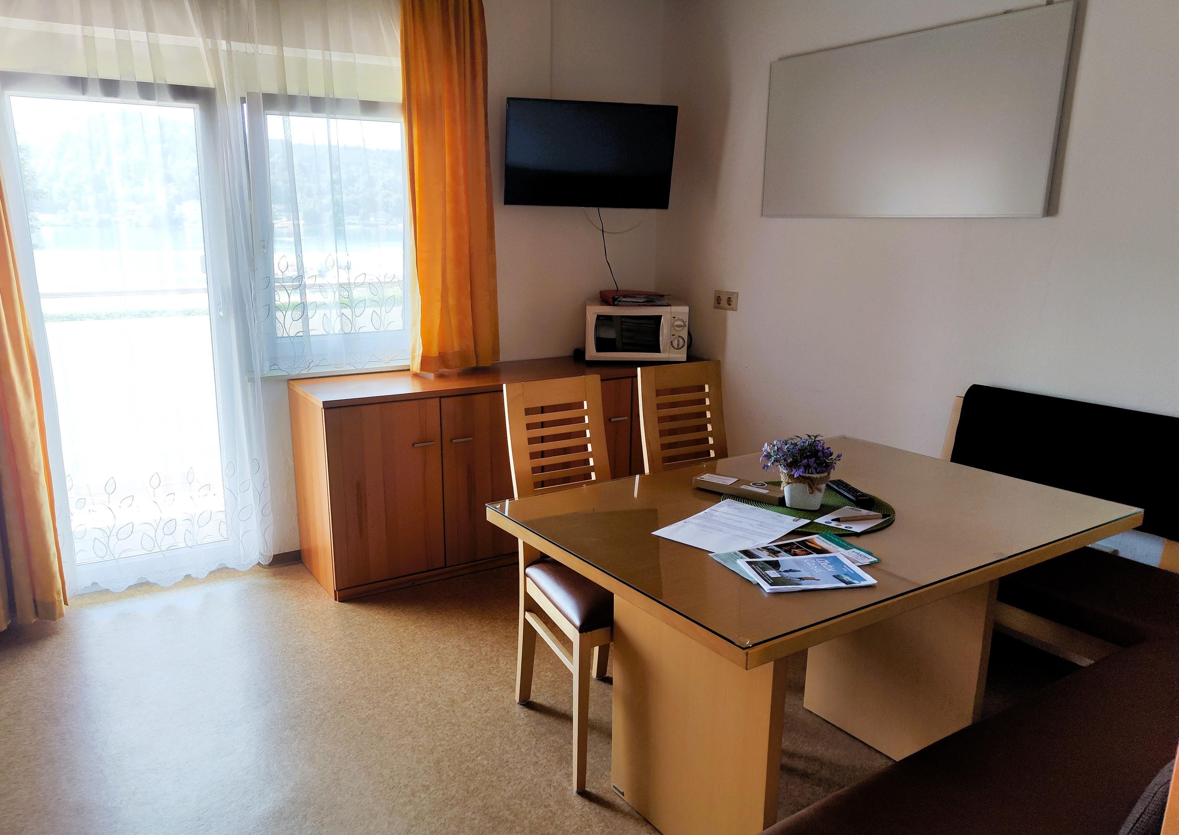 Unsere größte gelbe Ferienwohnung (58m²) mit Seeblick bietet u.a. 2 getrennte Schlafzimmer, Safe und eine neue Küche mit Geschirrspüler, Backrohr an. Sie genießen direkten Blick auf Promenade und Badesteg. Autofrei.Schlafzimmer sind mit Rollos und Insektenschutzgitter ausgestattet. Herrliche Möglichkeit um Ihre Mahlzeiten direkt am Balkon einzunehmen mit wunderschönen Panoramablick. In der Wohnung sind 2 Liegestühlen und 1 Sonnenschirm für Sie reserviert.