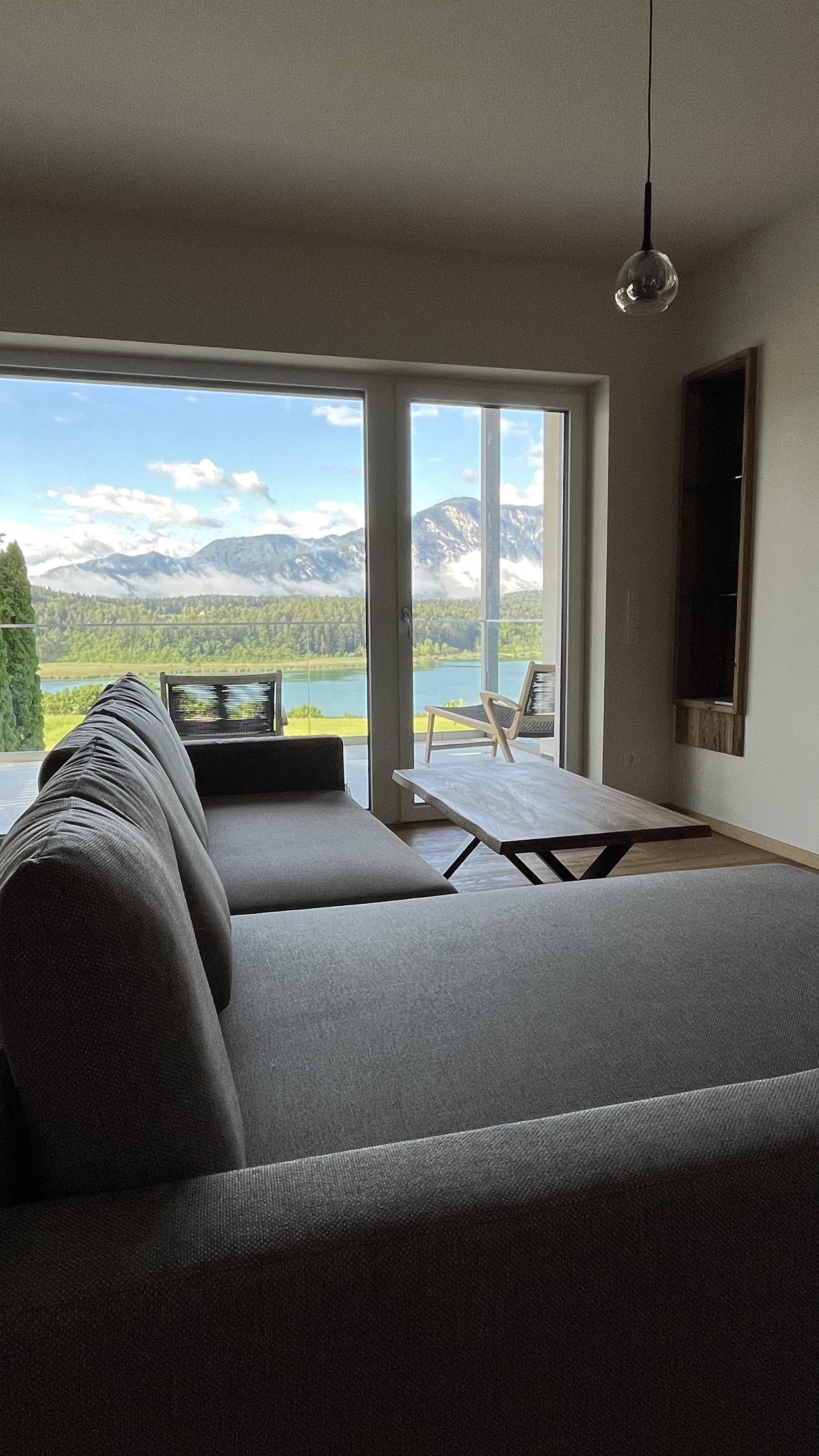 Das Penthouse-Appartement befindet sich im 2. Stock, ist 85 m² groß, verfügt über eine 20 m² große überdachte Terrasse mit Blick auf den See und ist das Highlight unseres Hauses. Die Terrasse ist mit Gartenmöbeln ausgestattet und lädt zum Verweilen, mit Aussicht auf die Karawanken, ein.
