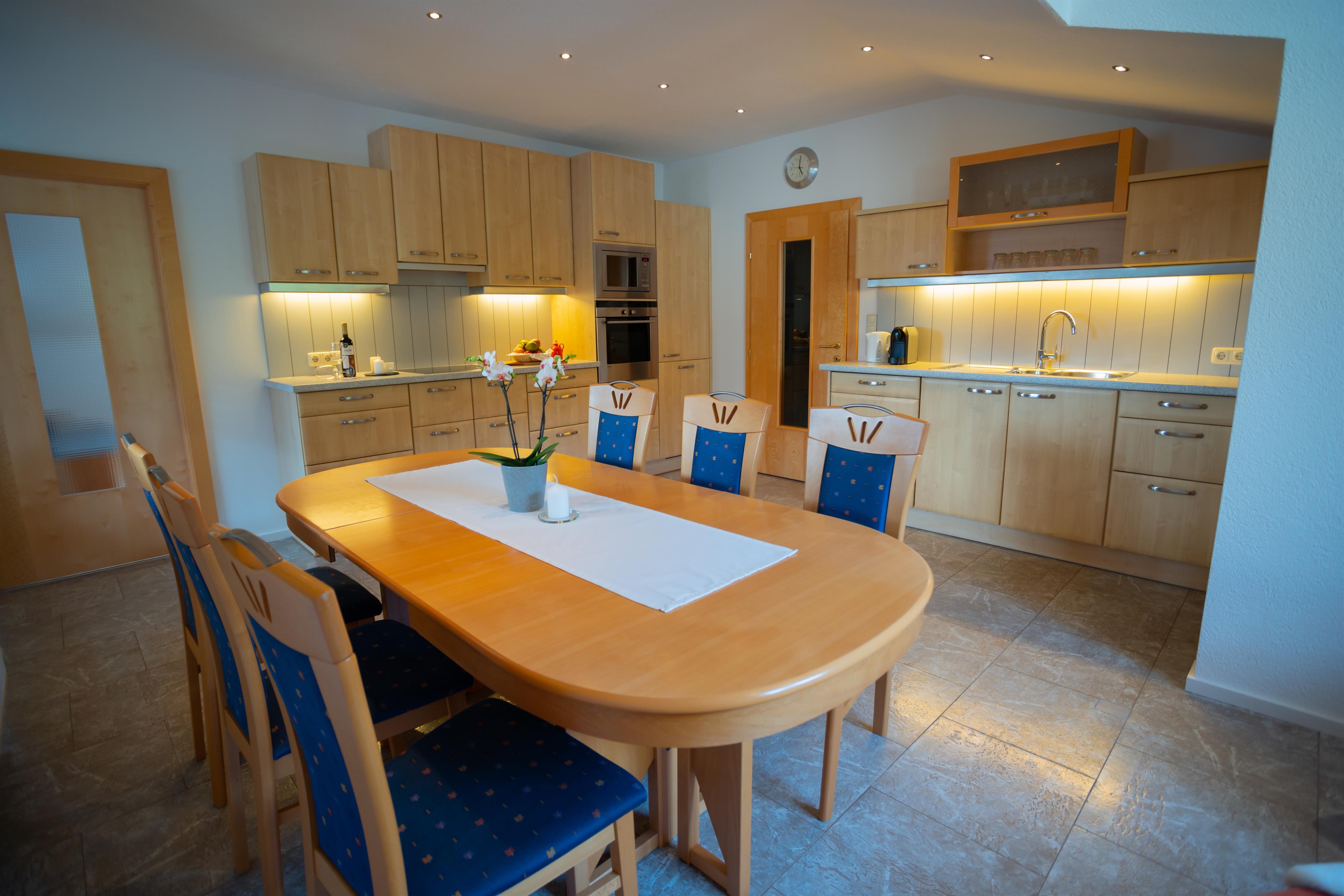 vollausgestattete Küche mit Kaffemaschine, Wasserkocher, Mikrowelle, Geschirrspüler, Backrohr, Toaster und Küchenutensilien