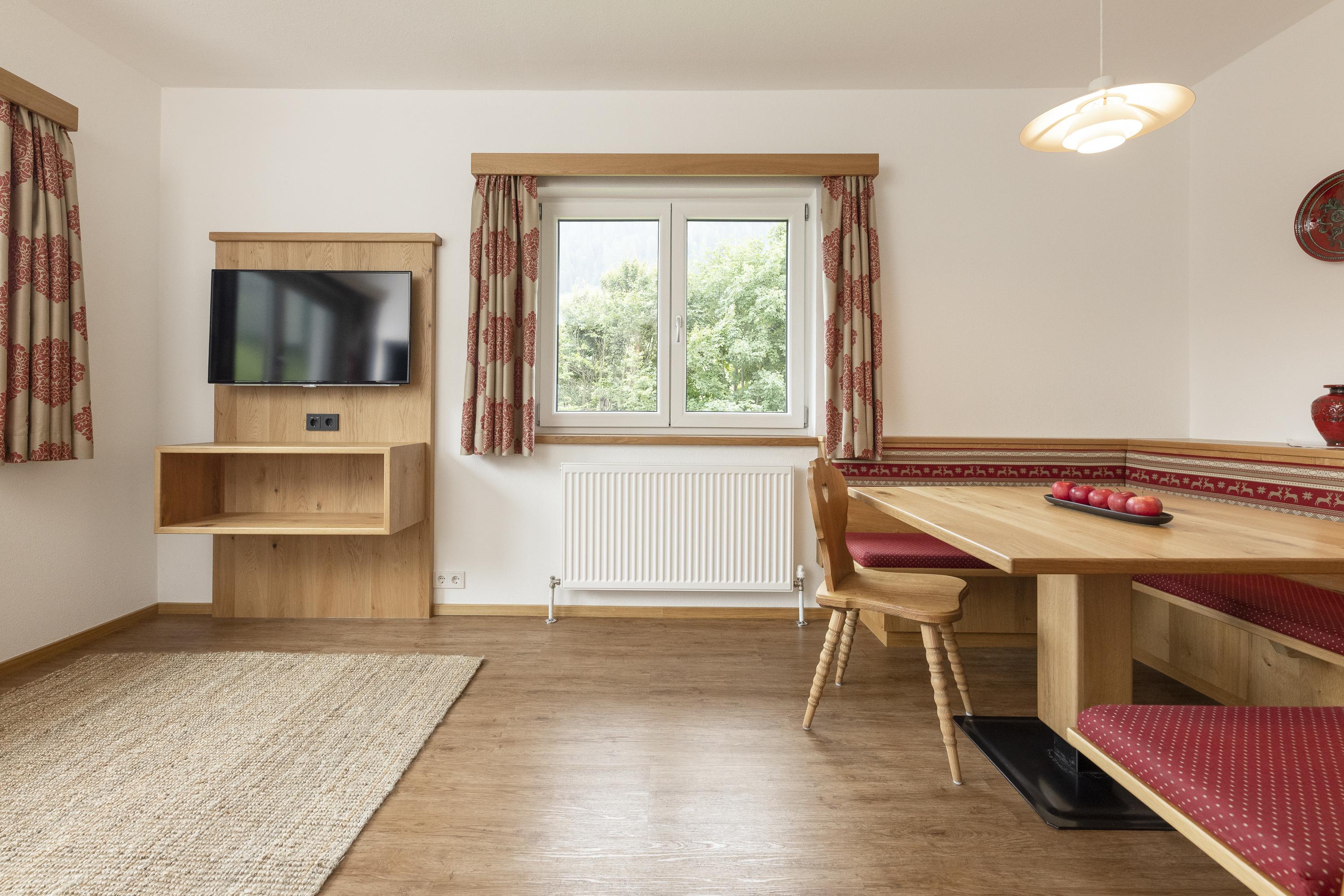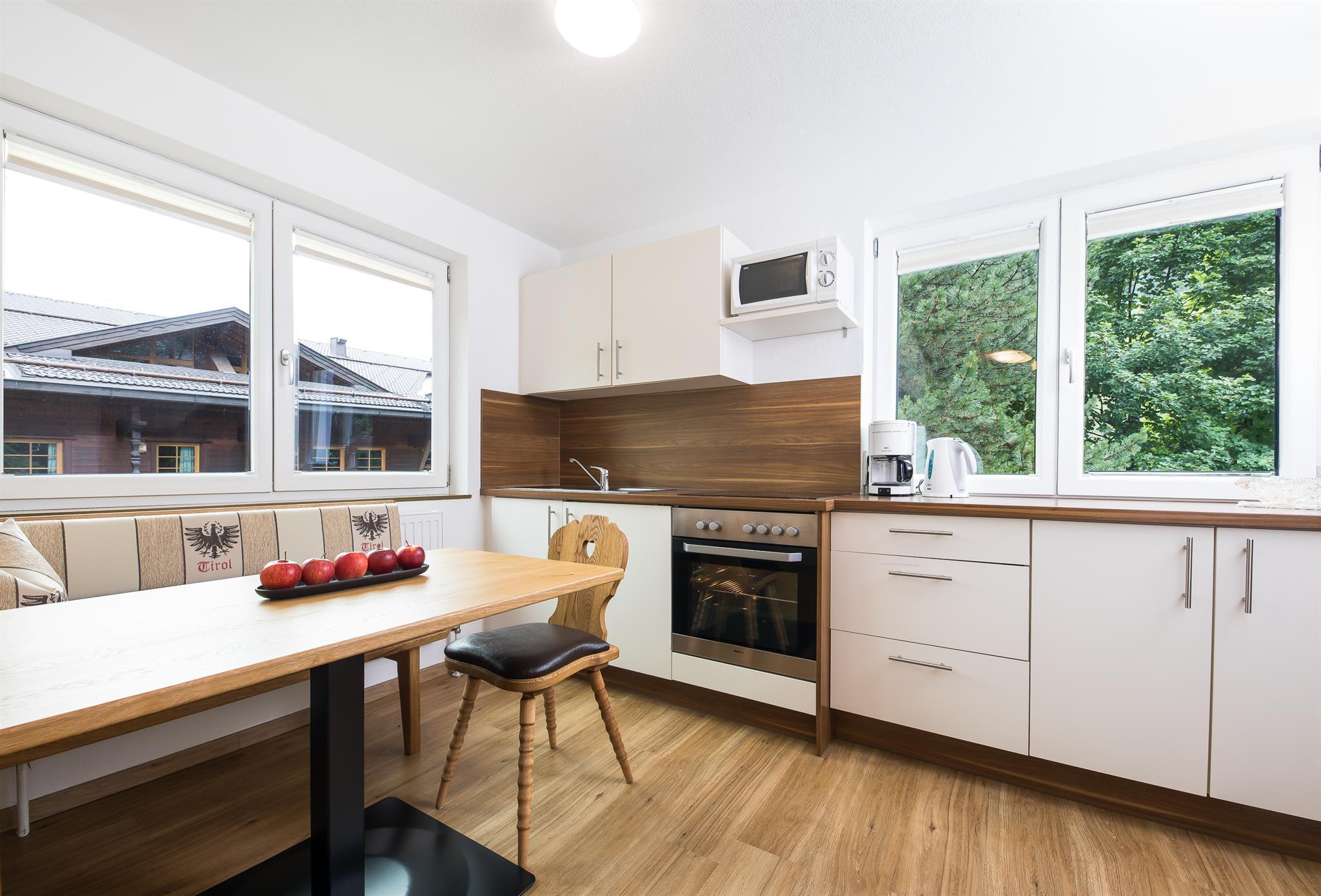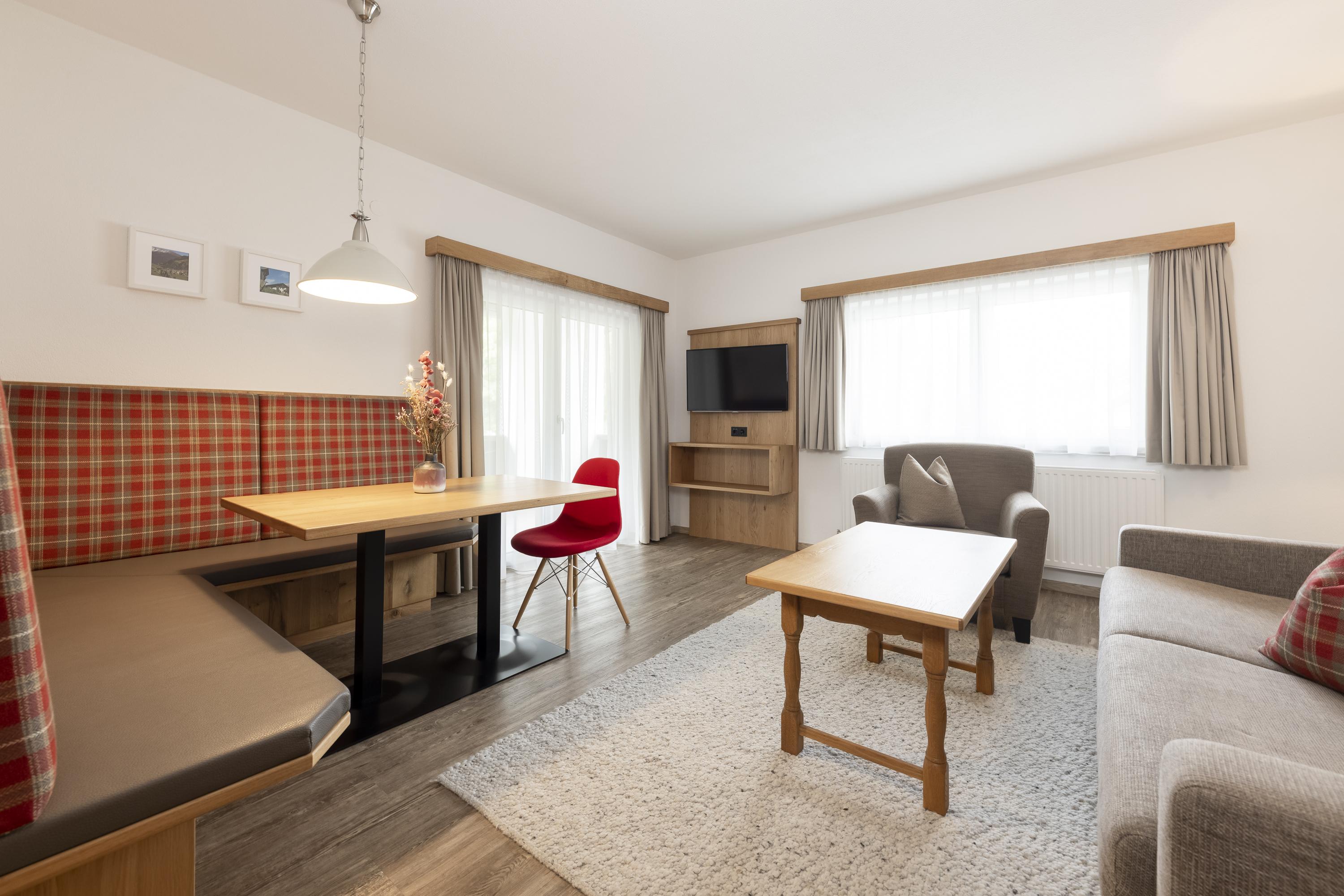 Dieses Apartment verfügt über 2 Schlafzimmer mit Doppelbetten, ein separates Wohnzimmer mit einem Schlafsofa und eine Küche mit einem Geschirrspüler. Das Apartment ist im Tiroler Landhausstil, mit Holzmöbeln eingerichtet. Zur Ausstattung gehört ein Flachbild-Sat-TV.