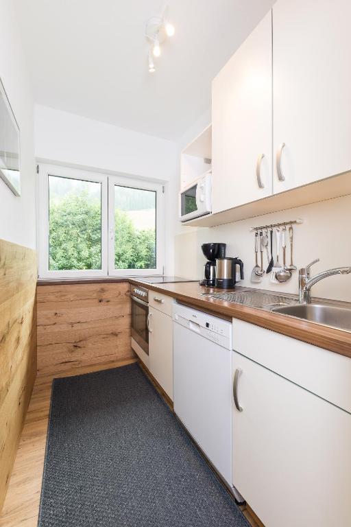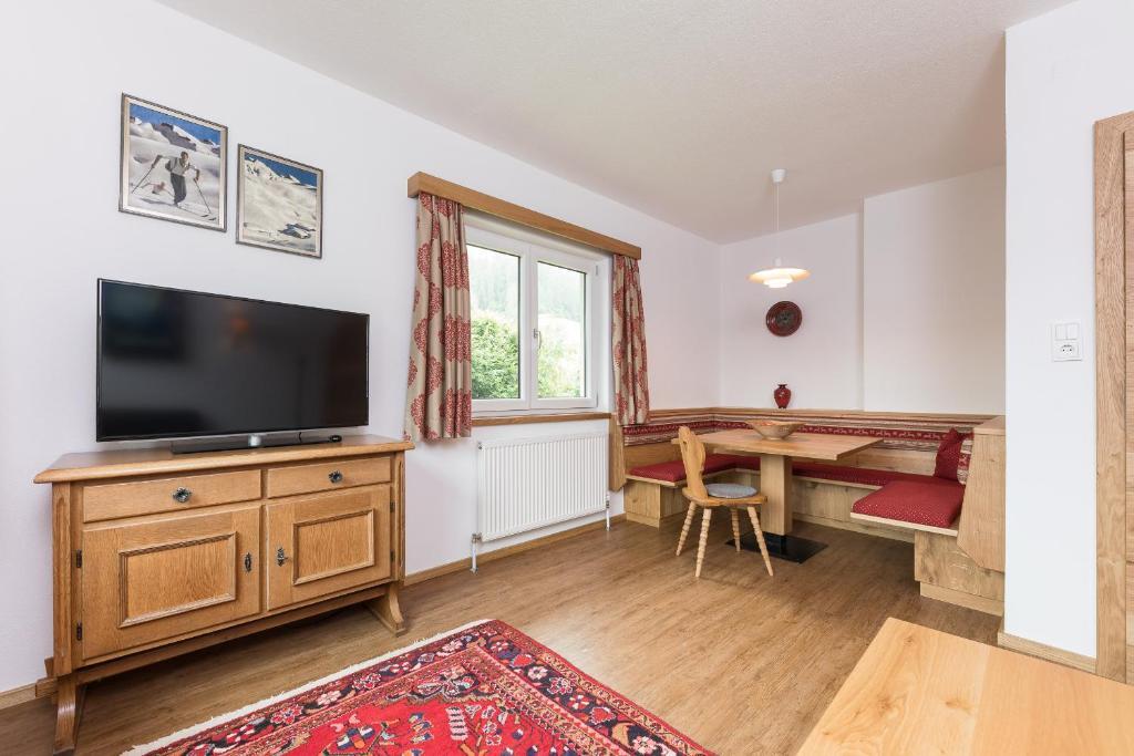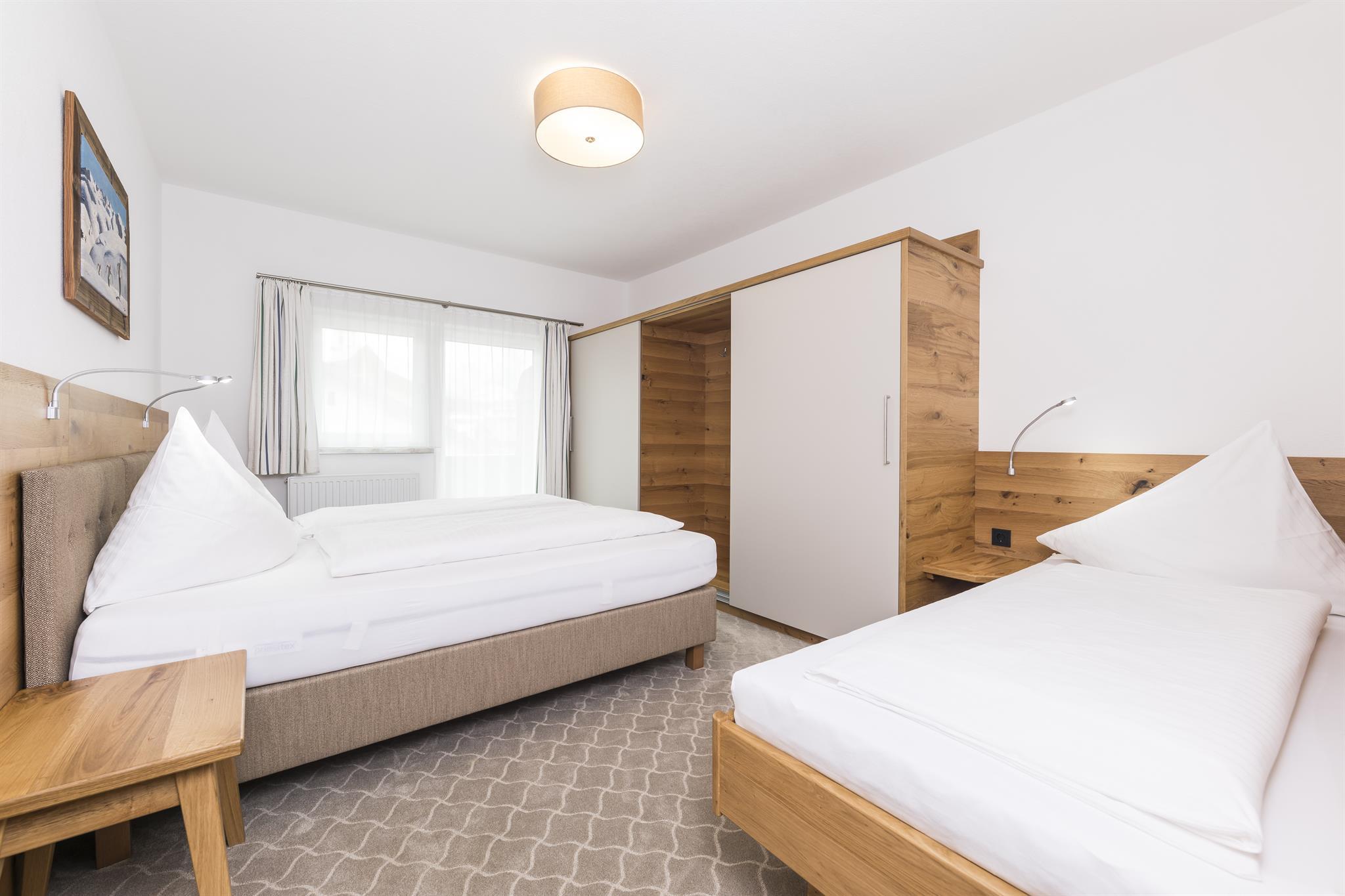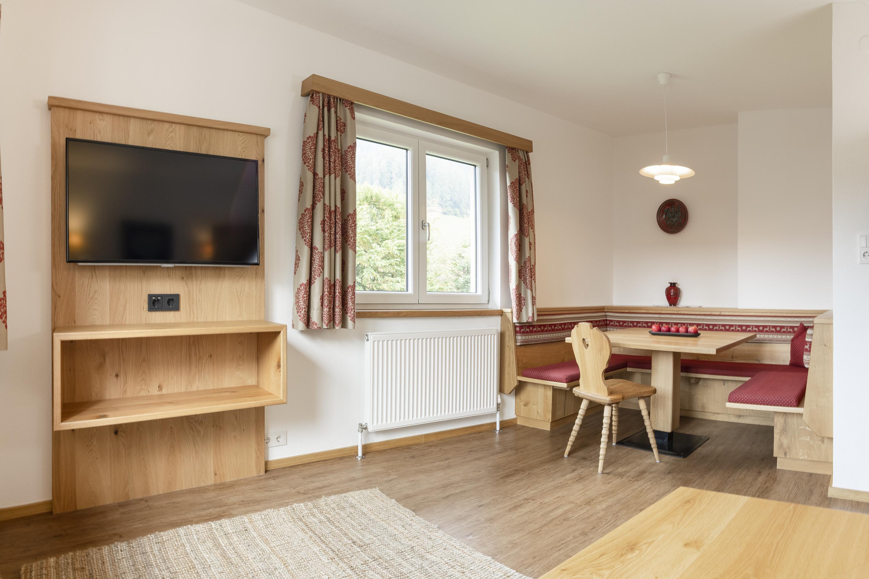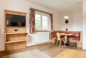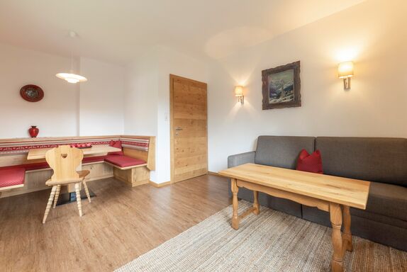 Dieses Apartment verfügt über 2 Schlafzimmer mit Doppelbetten, ein separates Wohnzimmer mit einem Schlafsofa und eine Küche mit einem Geschirrspüler. Das Apartment ist im Tiroler Landhausstil, mit Holzmöbeln eingerichtet. Zur Ausstattung gehört ein Flachbild-Sat-TV.