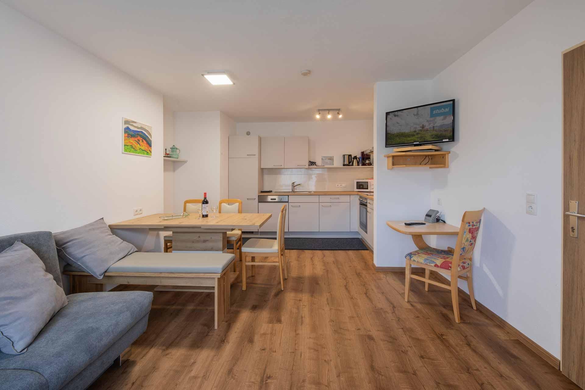 Die ruhige Lage am Ortsrand bietet eine erholsame Atmosphäre, ideal, um dem Trubel des Alltags zu entkommen und sich zu erholen. Der Panoramablick auf das Stubaital und den Stubaier Gletscher ist beeindruckend und bietet eine großartige Möglichkeit, die Schönheit der Region zu genießen.