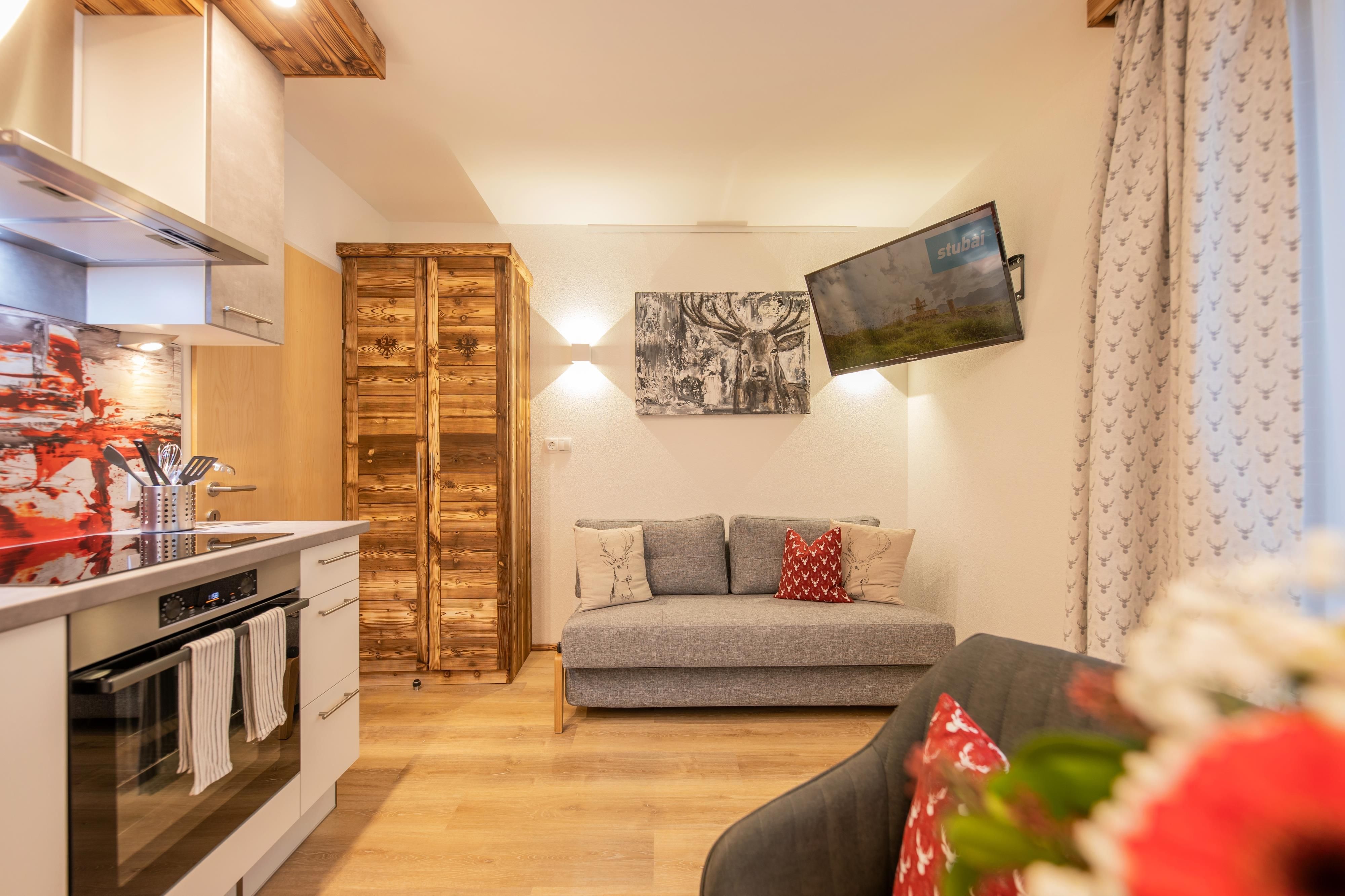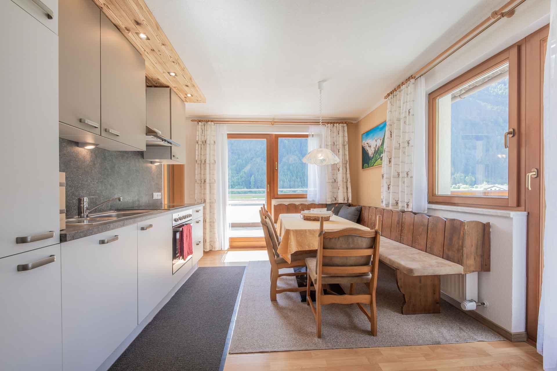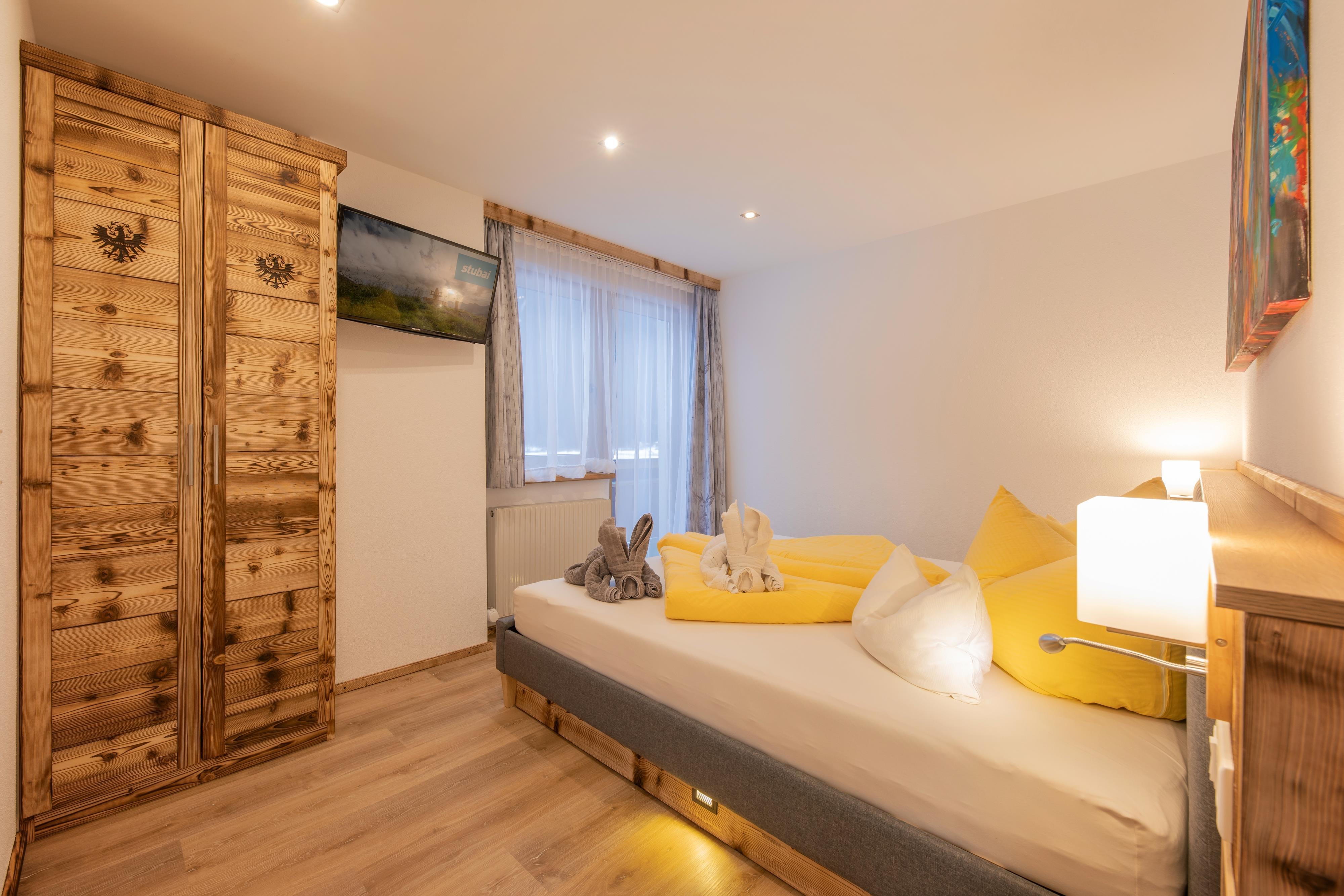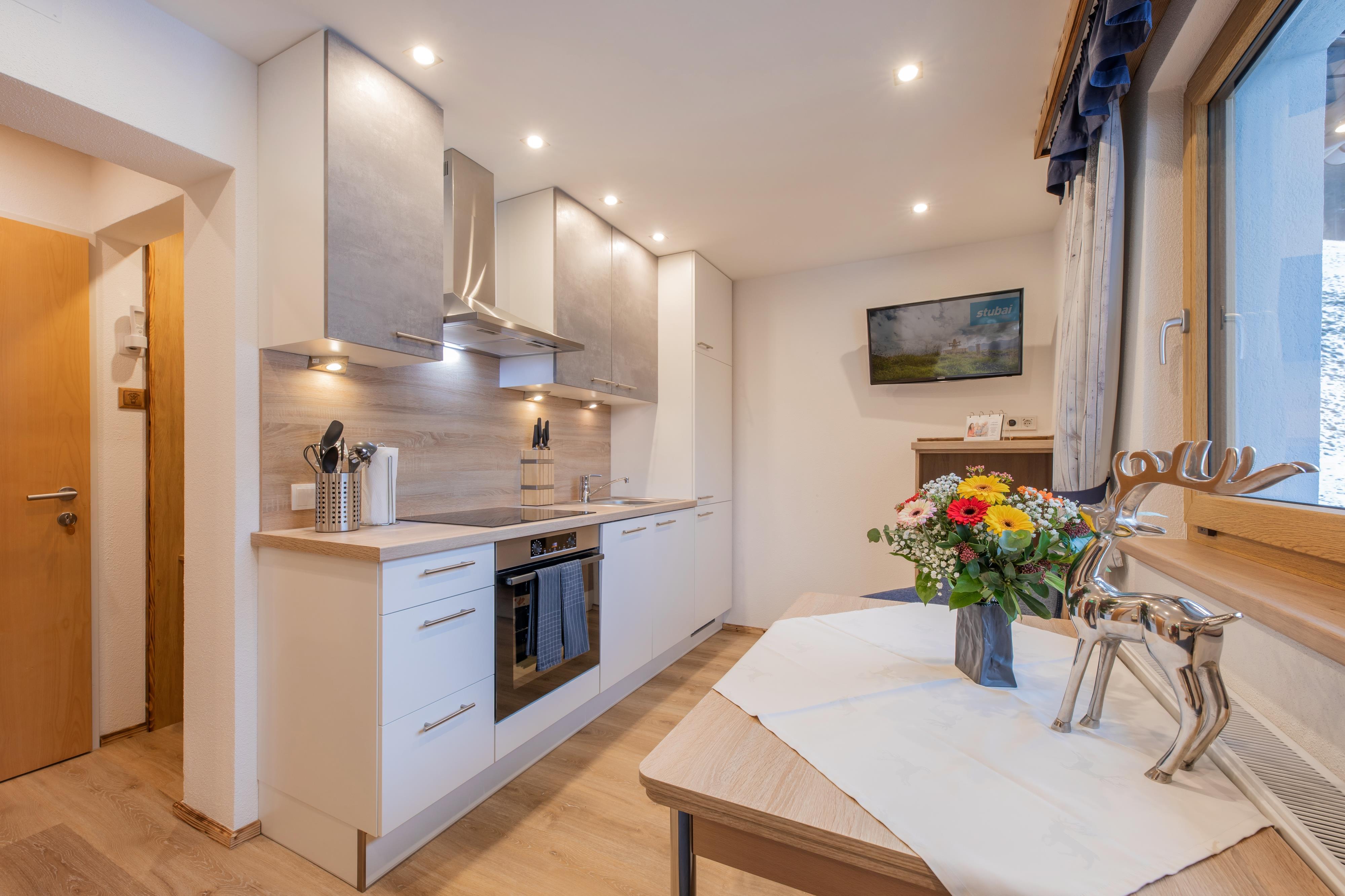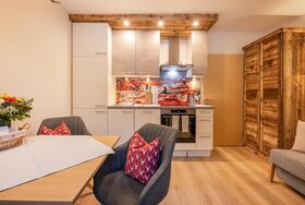 Unsere nigel-nagel-neue Ferienwohnung 1 im vierten Stock des Gästehauses Kartnaller ist mit ihren 40 m² speziell für Pärchen und kleine Familien geeignet. Auf dem großen Süd-/Westbalkon geniessen Sie ungestört die Sonne!