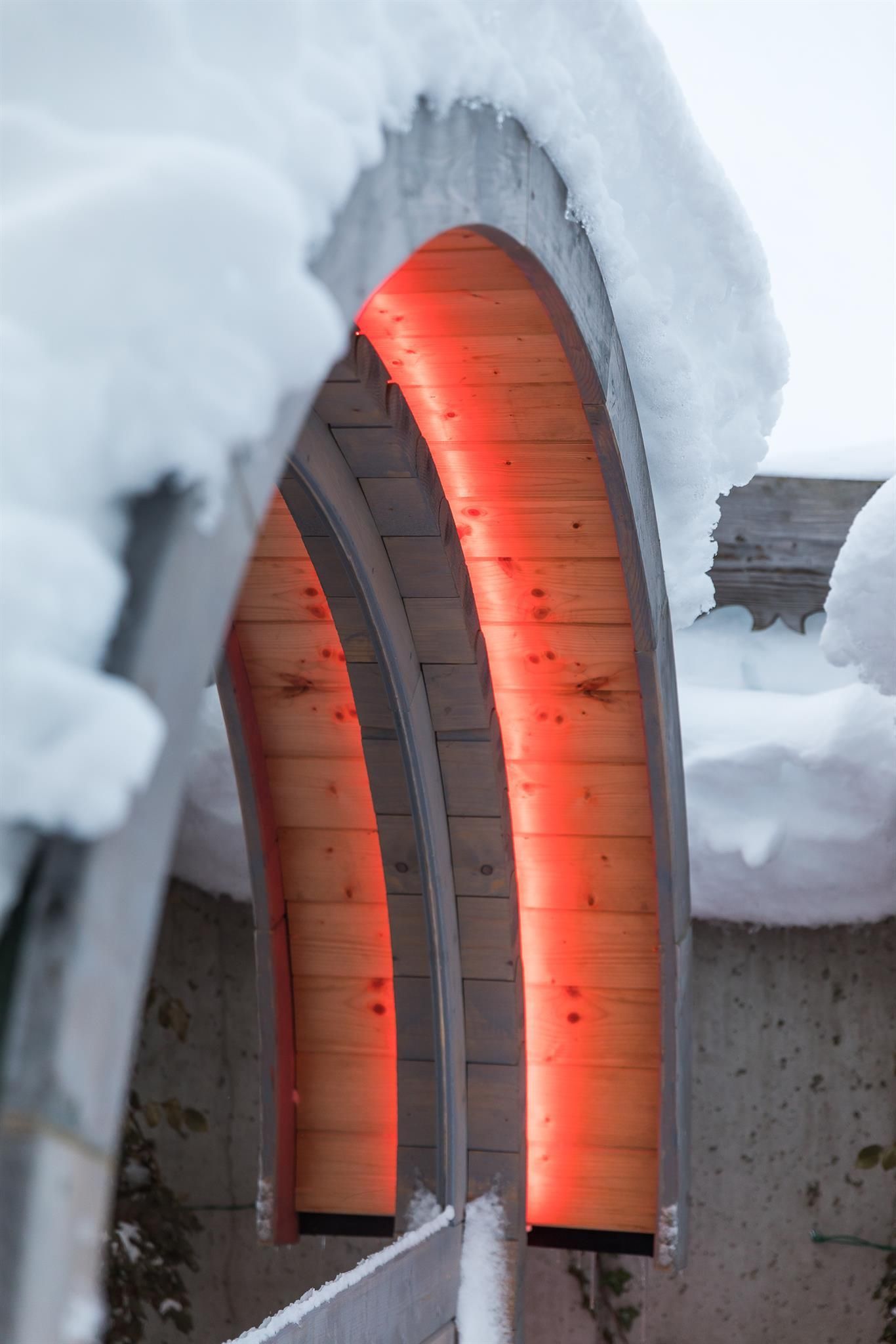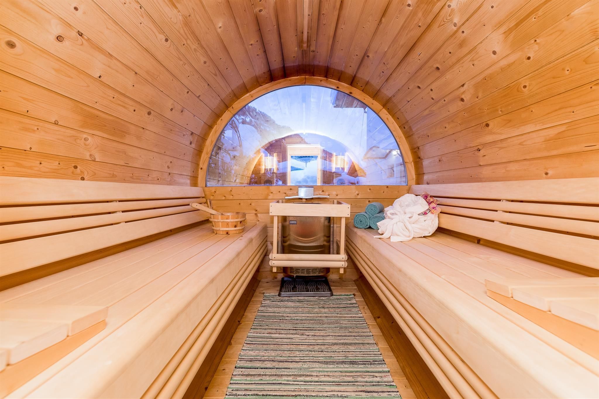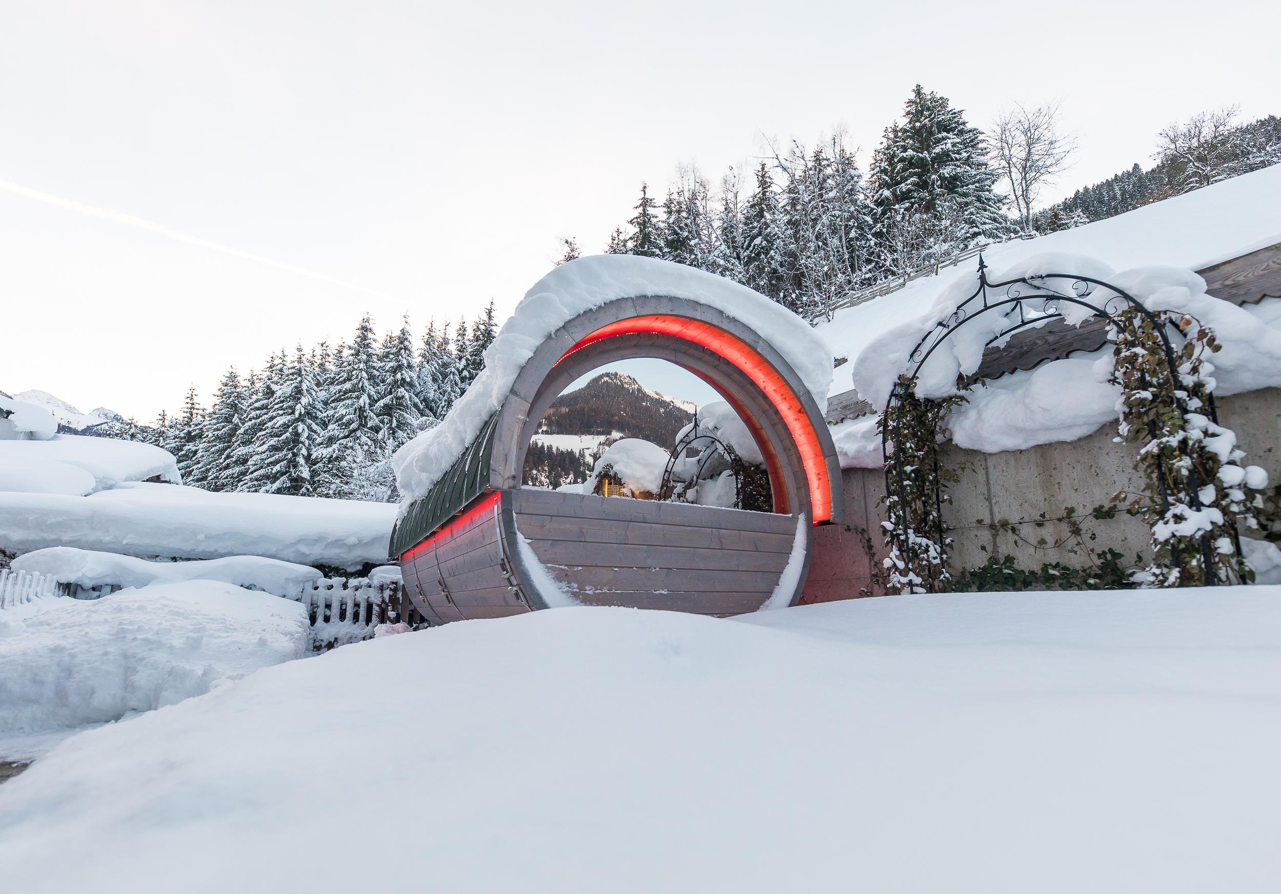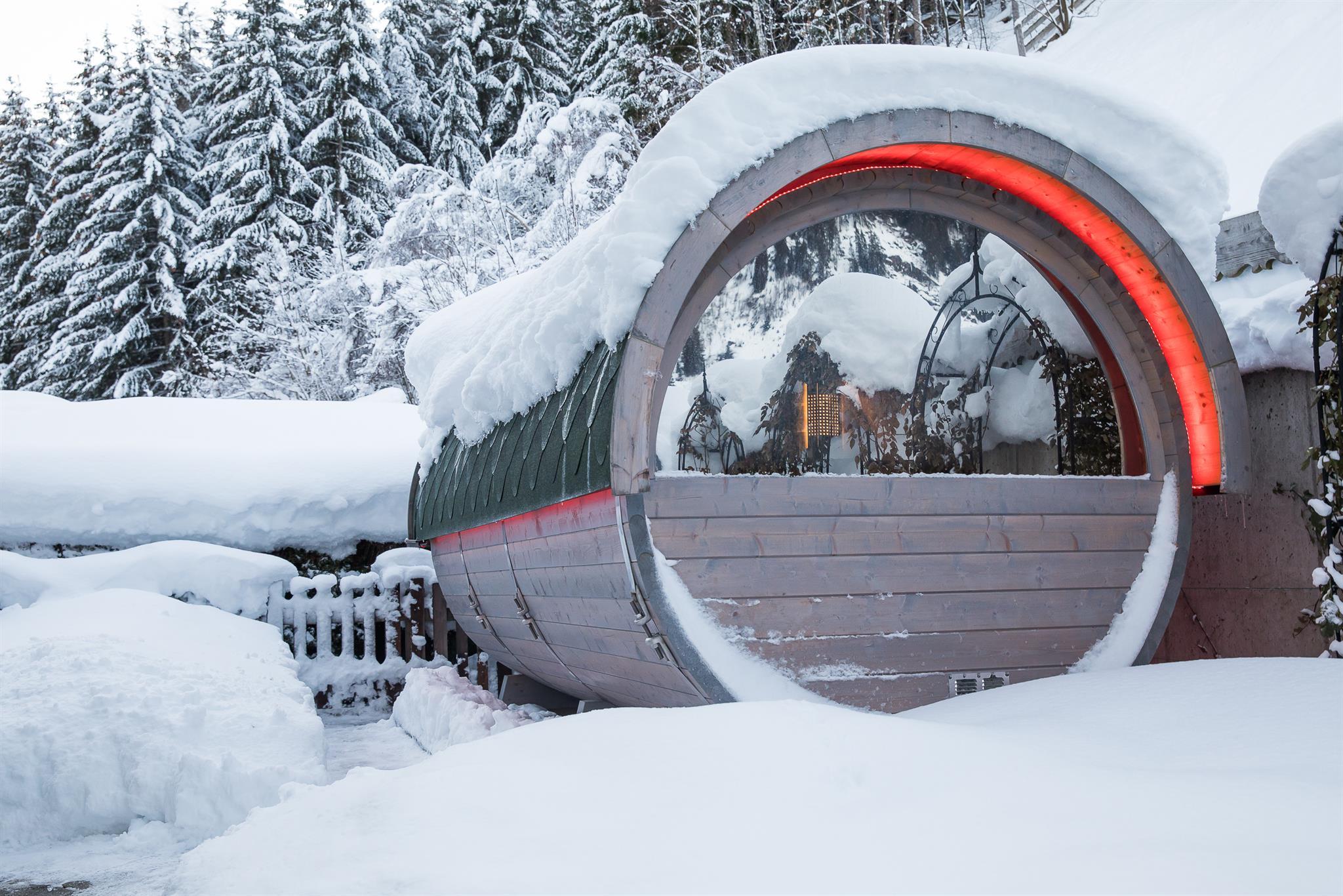 Wellnessen ganz privat und originell: im exklusiven Saunafass mit Blick auf die atemberaubende Stubaier Bergwelt.