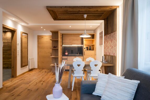 Ankommen und GAMS wohlfühlen im neuen Serviced Apartment ZINDEGG für 2-4 Personen im Sepp & Hanni's - Suiten im Dorf, nur 5 Gehminuten vom Hotel Der Stubaierhof entfernt. Optional auch exklusive Genießer-Halbpension buchbar.