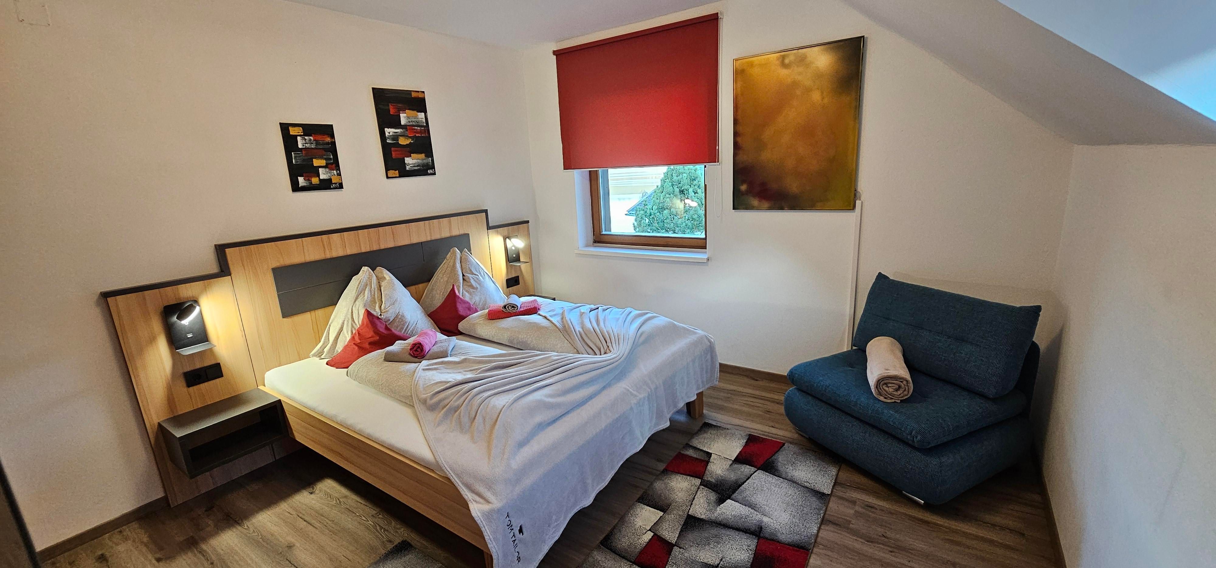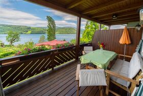 Unsere hellen und freundlichen **Ferienwohnungen** bieten Seeblick und moderne Annehmlichkeiten. Zudem können Sie sich im **Garten** entspannen oder nach einem aktiven Tag die **Grillmöglichkeiten** nutzen. Ideal für Familien haben wir an die Kleinsten gedacht: **Kinderausstattung**, ein **Kinderspielplatz** und viele Spiele für drinnen warten auf unsere kleinen Gäste.