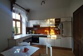Die Küche der Villa Martiny beinhaltet alles, was man im Alltag benötigt. Esstisch, Küchenzeile mit Herd, Backofen, Geschirrspüler, Abwasch, Kühlschrank mit kleinem Gefrierfach. Alle Küchenutensilien sind vorhanden und sollte doch einmal etwas fehlen, Ihre Vermieterin kann bestimmt aushelfen!