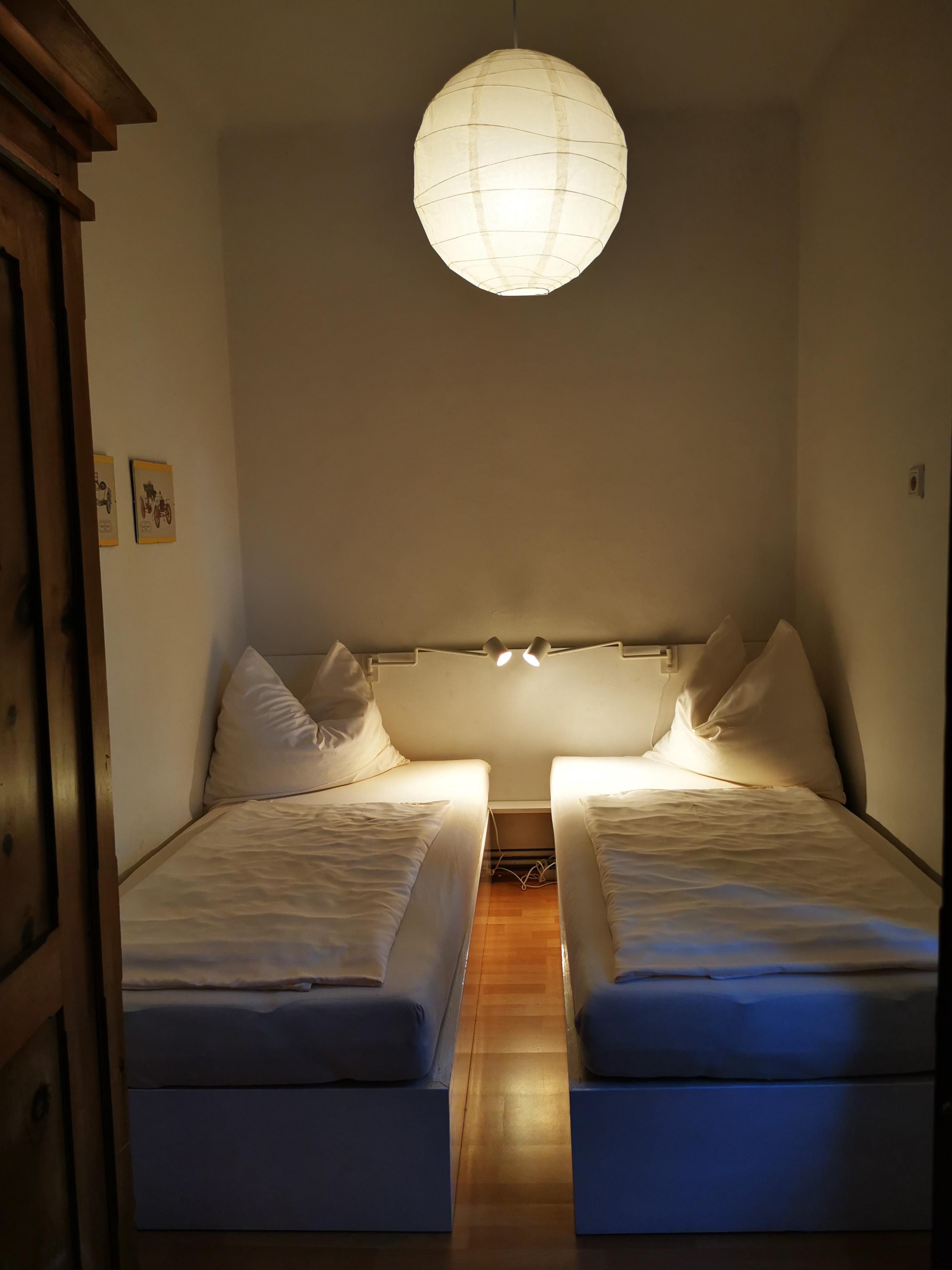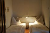Die Ferienwohnung für 1-4 Personen der Villa Martiny verfügt über ein großes Schlafzimmer mit Doppelbett (Durchgangszimmer) und ein kleineres Schlafzimmer mit flexibler Bettenaufteilung - je nach Bedarf können es 2 Einzelbetten (90x200) oder ein Doppelbett (180x200) sein.