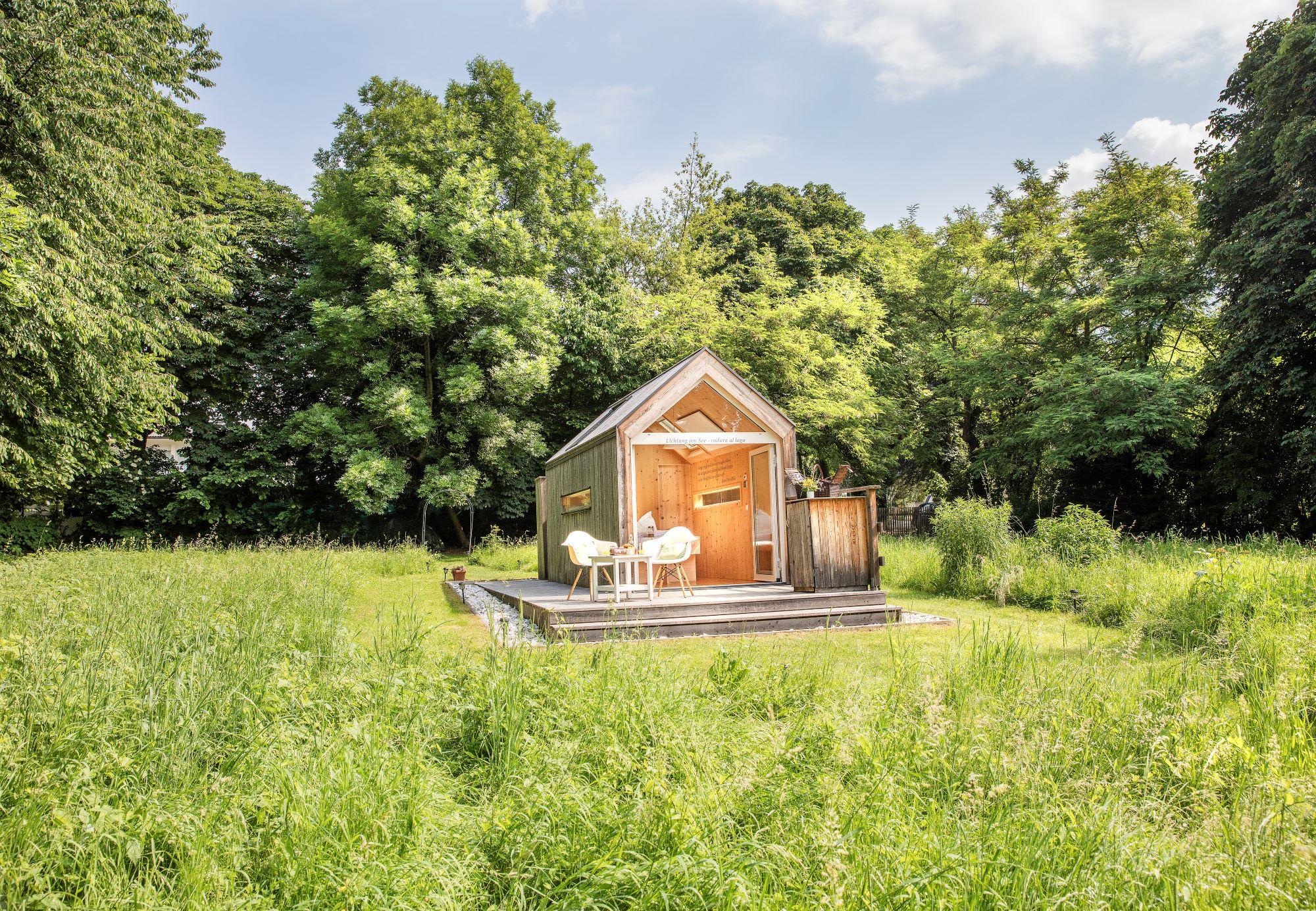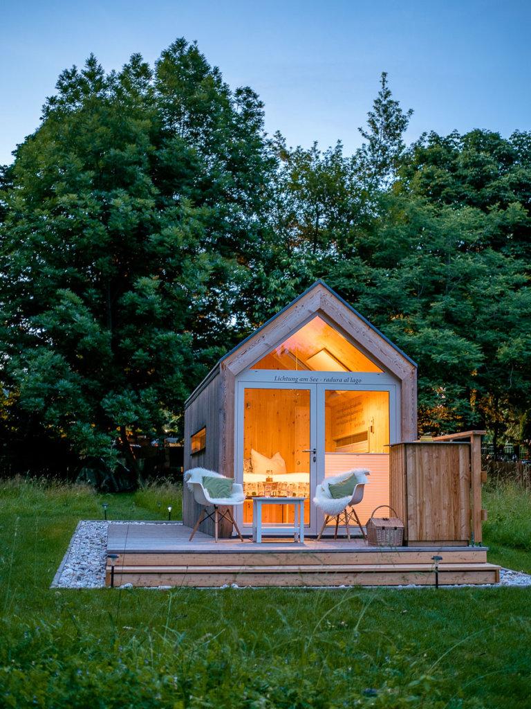 Das refugium am see ist der ultimative Rückzugsort für zwei Personen. Es liegt direkt am See, inmitten einer naturbelassenen Wiese. Obwohl so minimalistisch muss man auf den Komfort nicht verzichten. Im refugium gibt es Warmwasser und eine Warmwasser-Außendusche sowie einen Kühlschrank auf der Terrasse. Nespressomaschine und Wasserkocher gehören auch zur Ausstattung. Sonnenschirm und Liegen befinden sich ebenso beim refugium.