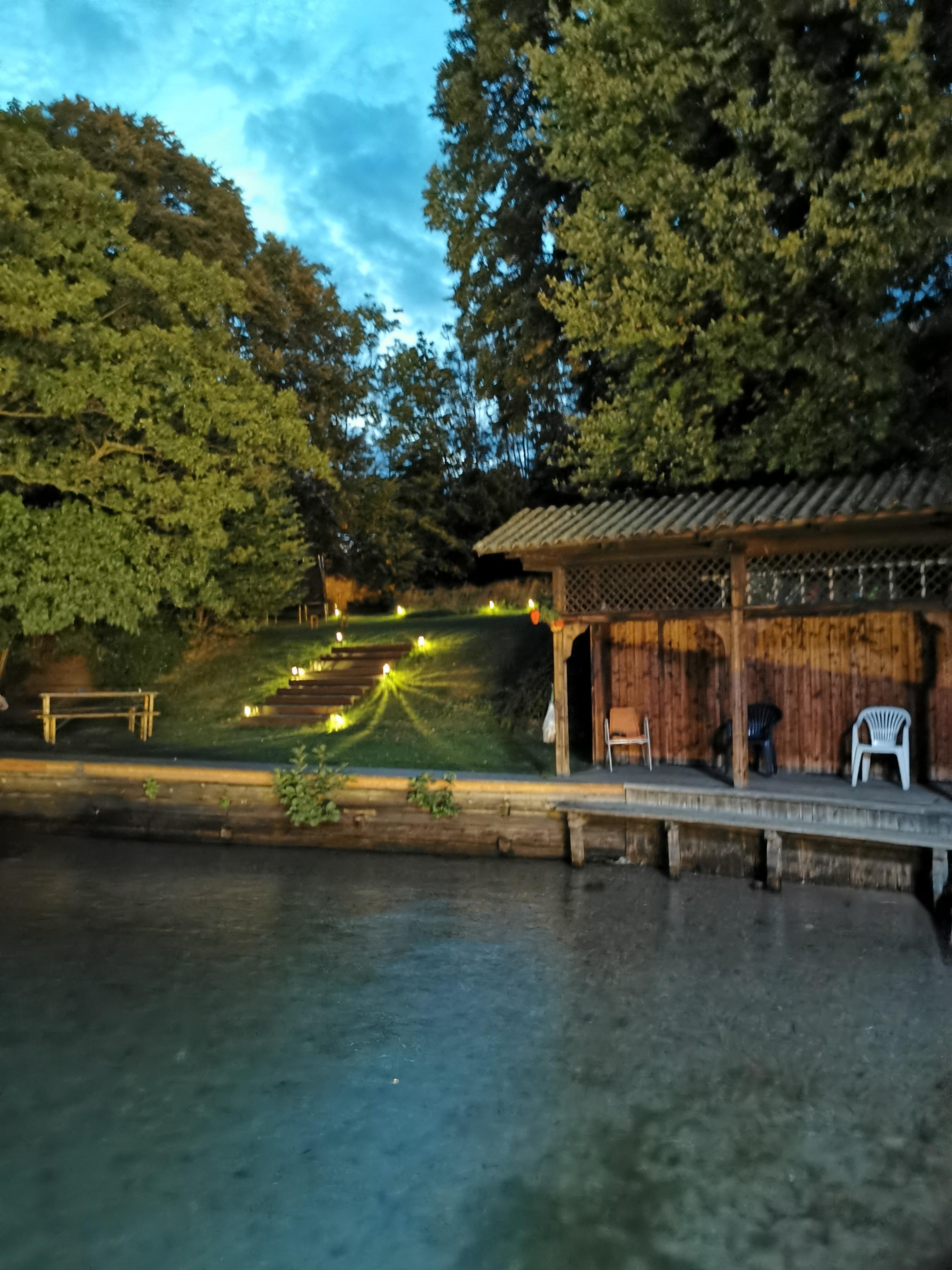 Inmitten einer 3.000 m² großen Wiese, umrandet von Kastanien Linden und Eschen, liegt dein refugium am see. Hier findest du die Ruhe und Erholung, die du brauchst. Rund um das refugium am see hast du den Platz ganz für dich alleine, nur direkt am See triffst du zeitweise auf die Gäste der Ferienwohnung und meine Familie mit Freunden!