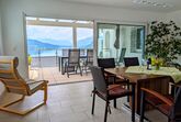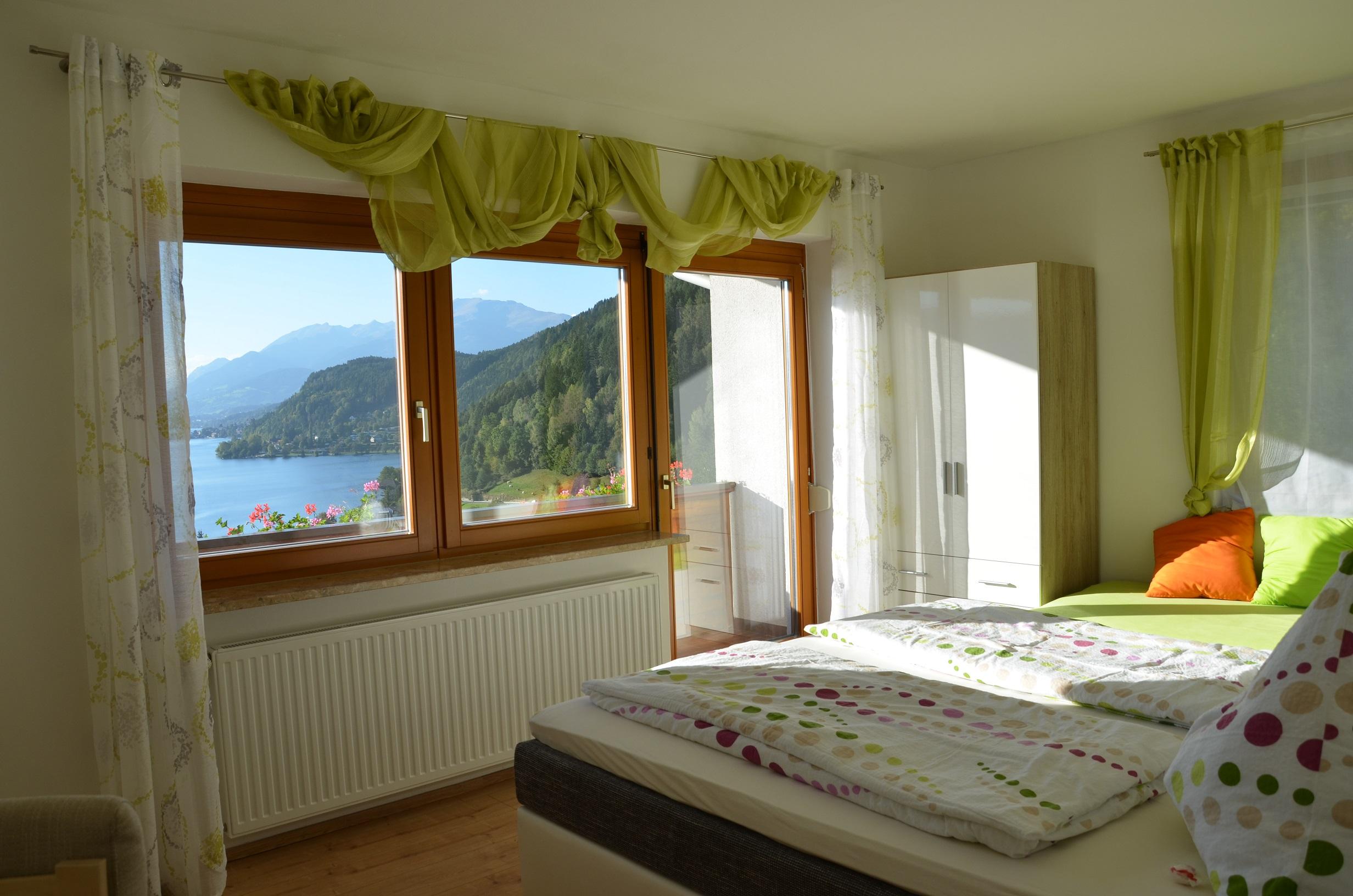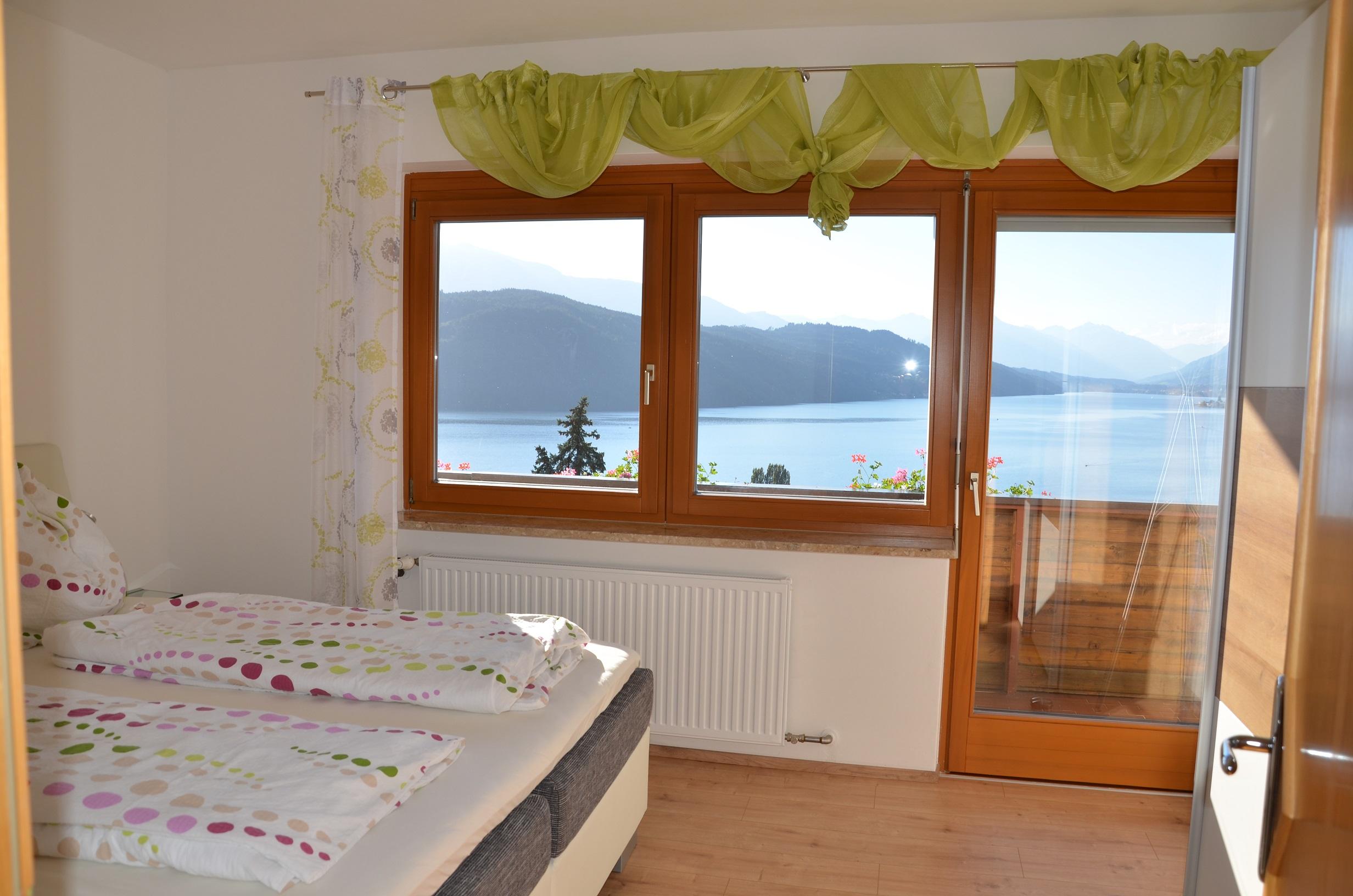 Unsere ca. 110m² Terrassenwohnung liegt im Hochparterre mit einem faszinierenden, freien Blick über den See und die Berge. Sie besteht aus einem Doppel- und einem Dreibettzimmer mit jeweils Dusche und WC, einem Wohnzimmer mit Südbalkon, einer Wohnkühe, Wintergarten mit Ostterrasse.