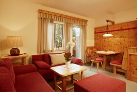 NEUE Zirben-Appartements (für max. 2 Erw. & 2 Ki. - bei App. 2 ev. Platz für 3 Ki.) mit je 2 getrennten Schlafzimmern (1x Doppelbett + 1x 2 Kinderbetten), gemütlichem Wohn-Esszimmer, Küche (inkl. Geschirrspüler & Mikrowelle), Bad mit Dusche/WC, Kabel-TV, W-LAN, südseitig mit Balkon (herrlicher Blick auf den Hausgarten & die Kaiserburg); ZUSATZ: Das duftende Zirbenholz beruhigt das Herz-Kreislauf-System wohltuend und schenkt erholsamen Schlaf!