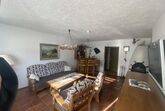 Der Wohnraum ist ein Wohnzimmer mit großem Fenster (Hell), eine Bar und eine Bauernecke. Unsere Küche ist abgeschlossen mit großem Fenster.
