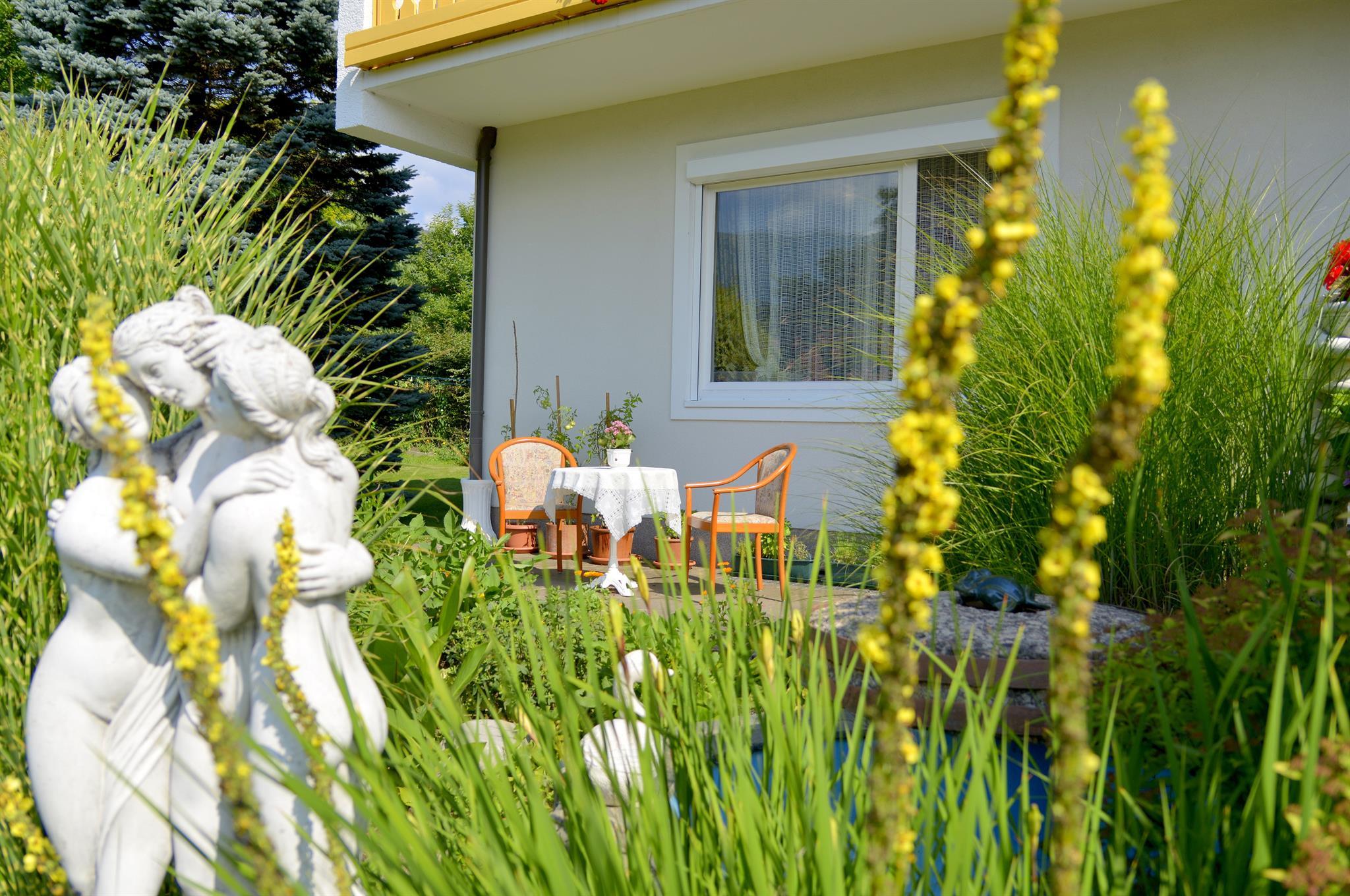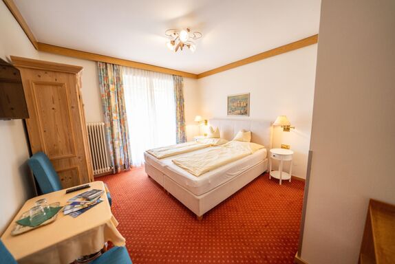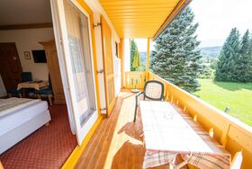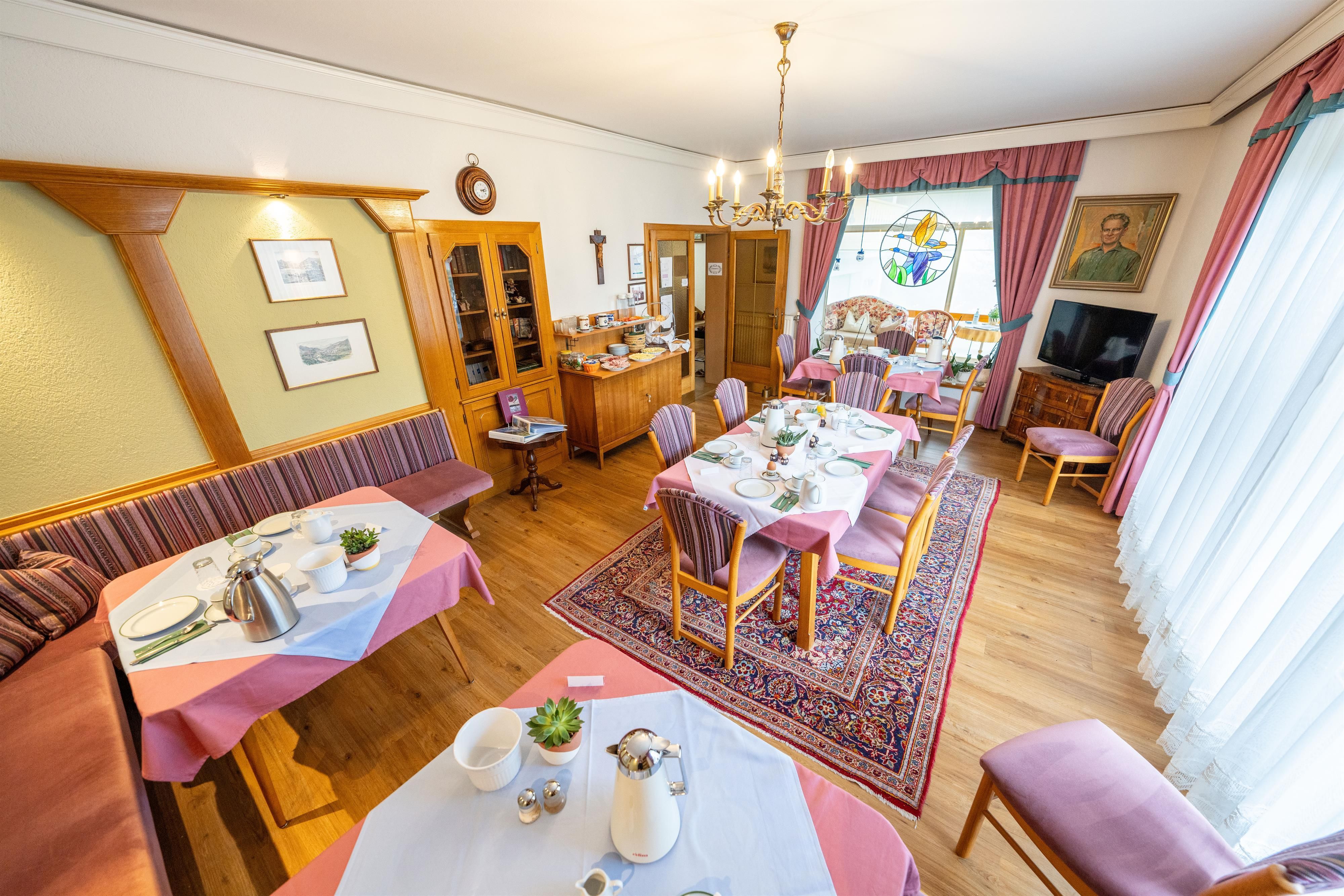 Das schöne und gemütlich eingerichtete Zimmer ist ausgestattet mit Dusche/WC, Zentralheizung, Sat/TV, kostenlosen W-LAN und Blick auf den Garten und die umliegende Bergwelt, Frühstücksbuffet. Gästekühlschrank. Frühstücksraum mit SAT/TV.