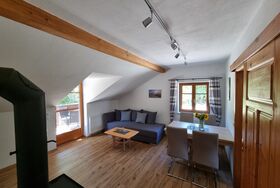 Verbringen Sie Ihren Urlaub im südlichen Waldviertel in einer gemütlichen, liebevoll gestalteten 85 m2 Nichtraucher-Ferienwohnung für bis zu 4 Personen. Sie besteht aus einem großzügigen Eingangsbereich, ein Esszimmer mit TV, einer voll ausgestatteten Küche (Wasserkocher, Toaster, Kaffee und Espressomaschine uvm.), getrenntes WC und Bad (inkl. Handtücher), zwei Schlafzimmer und einem Balkon (20m²).