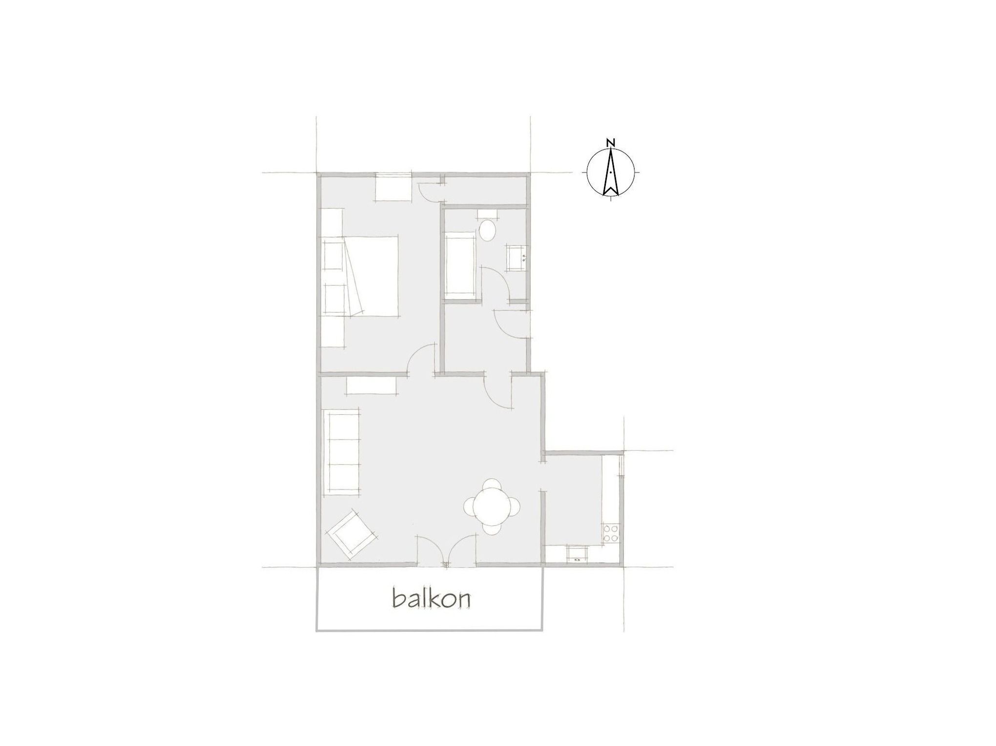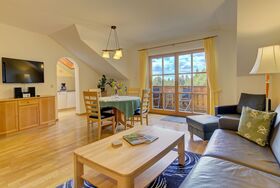 Vier Personen können am Esstisch speisen. Im Wohnzimmer befindet sich ein ausziehbares Sofa für 2 extra Personen, ein Couchtisch, Radio mit CD und ein LCD TV. Kostenloses W-Lan ist erhältlich. Südbalkon mit Waldblick.