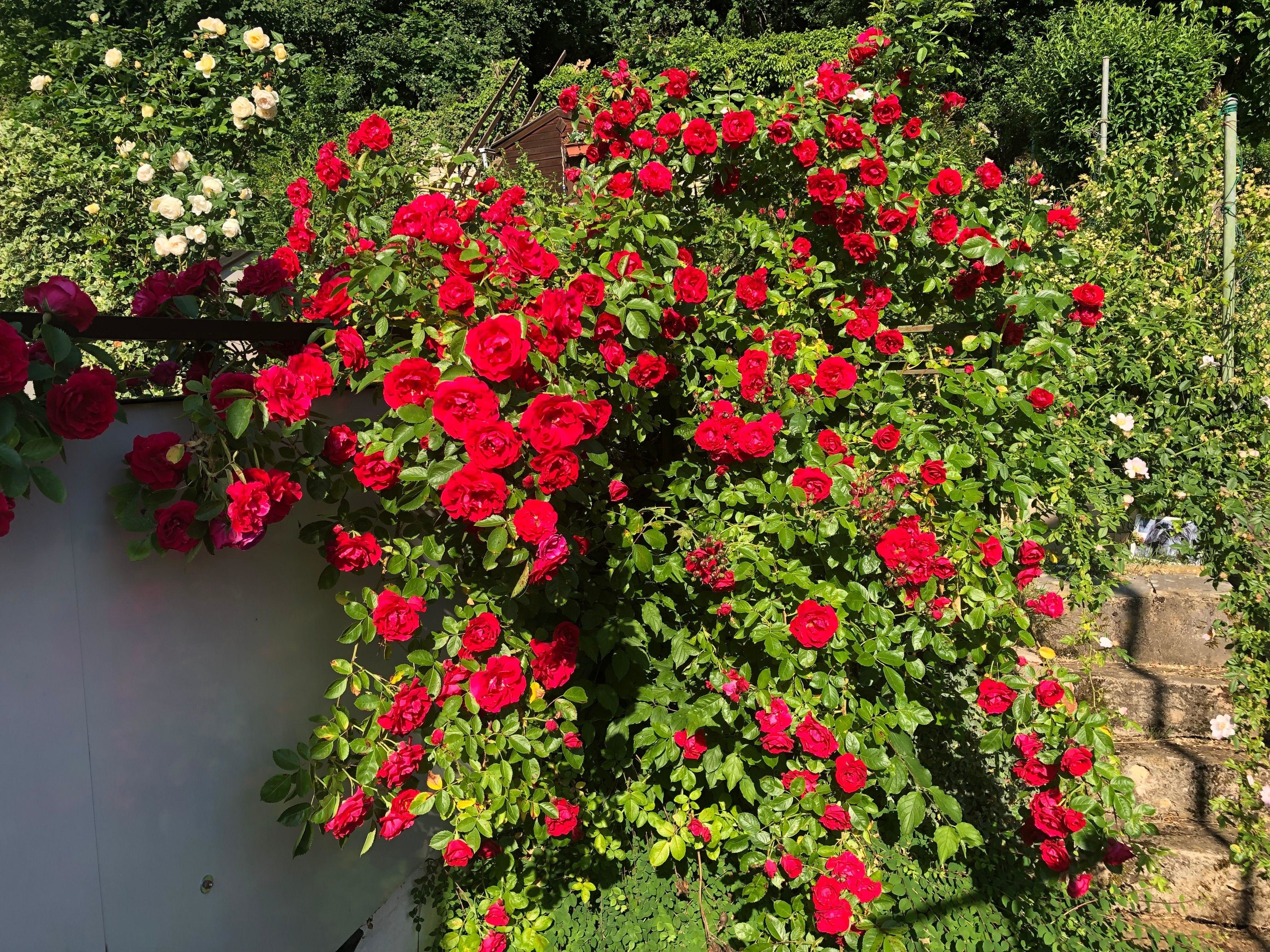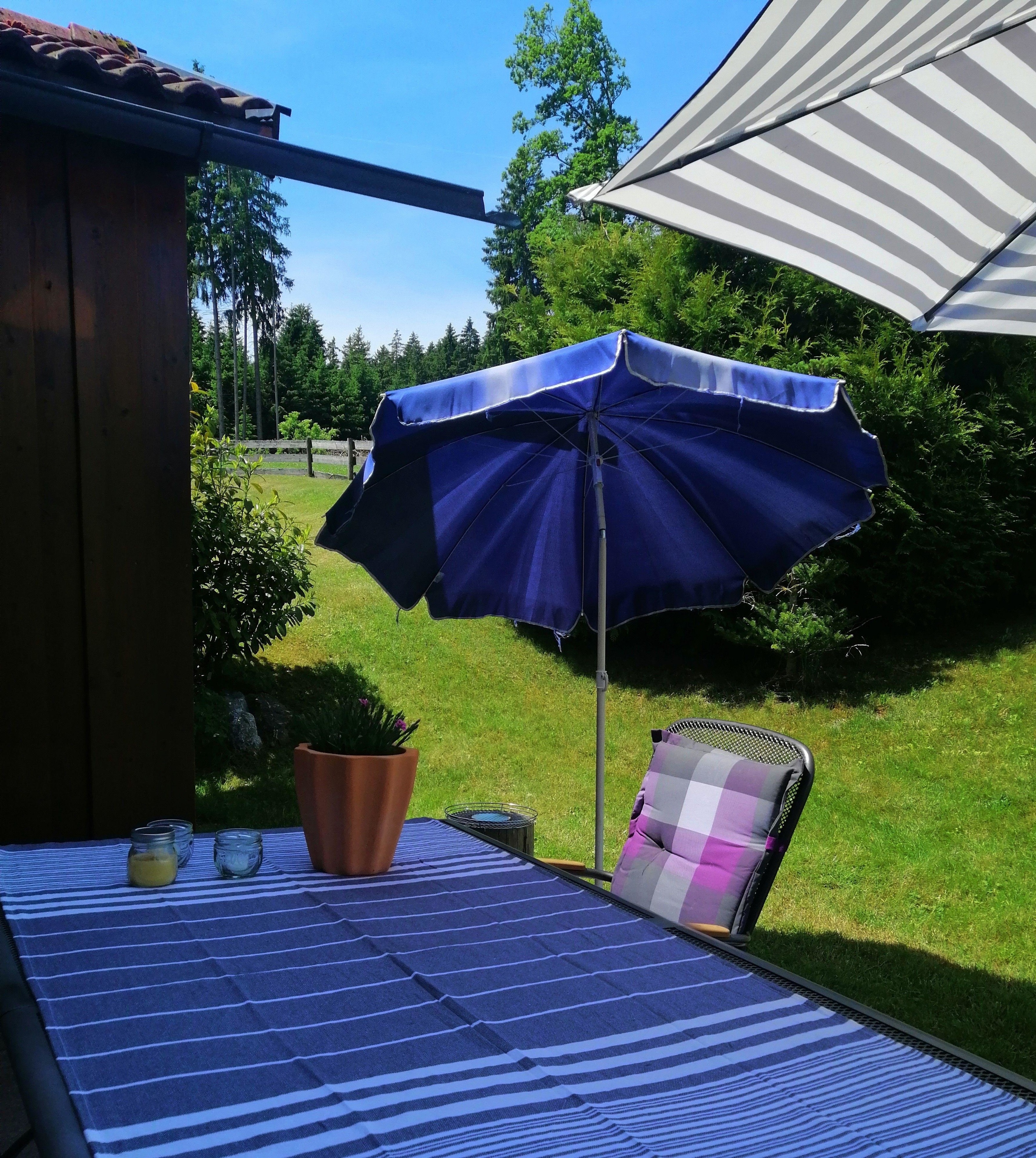 Vor und hinter dem Haus bieten 2 Terrassen und 1 Balkon ungestörte Erholung, eigener Parkplatz, Garten.