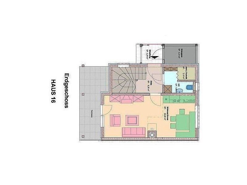 Separater Eingangsbereich, Abstellraum, großes Wohnzimmer mit Zugang zur vorderen Terrasse, Küche mit Zugang zur hinteren Terrasse. Gemütliche Essecke, Kamin, Gäste-WC befinden sich im UG, im 1.OG ist ein großes Bad mit Fenster und Dusche/Wanne (mit tiefen Einstieg), 1 Schlafzimmer (Waldseite), 1 Schlafzimmer mit Balkon und zusätzlich TV. Das Dach ist zur Schlafempore ausgebaut (mit Fenster).
