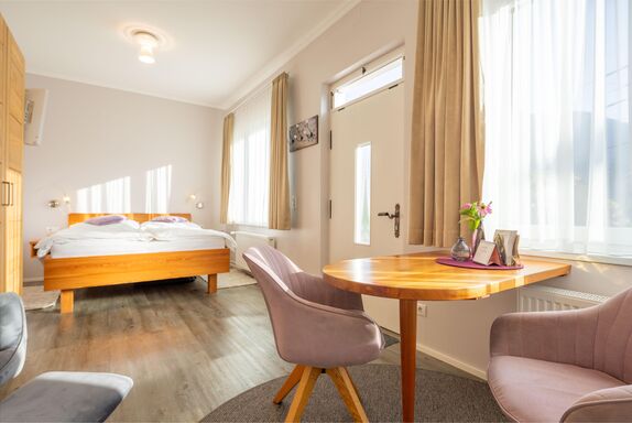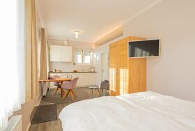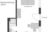 Die kleine Ferienwohnung mit 30 m² ist komplett ausgestattet und verfügt über einen seperaten Eingang. Öffentliche Parkplätze sind direkt gegenüber.