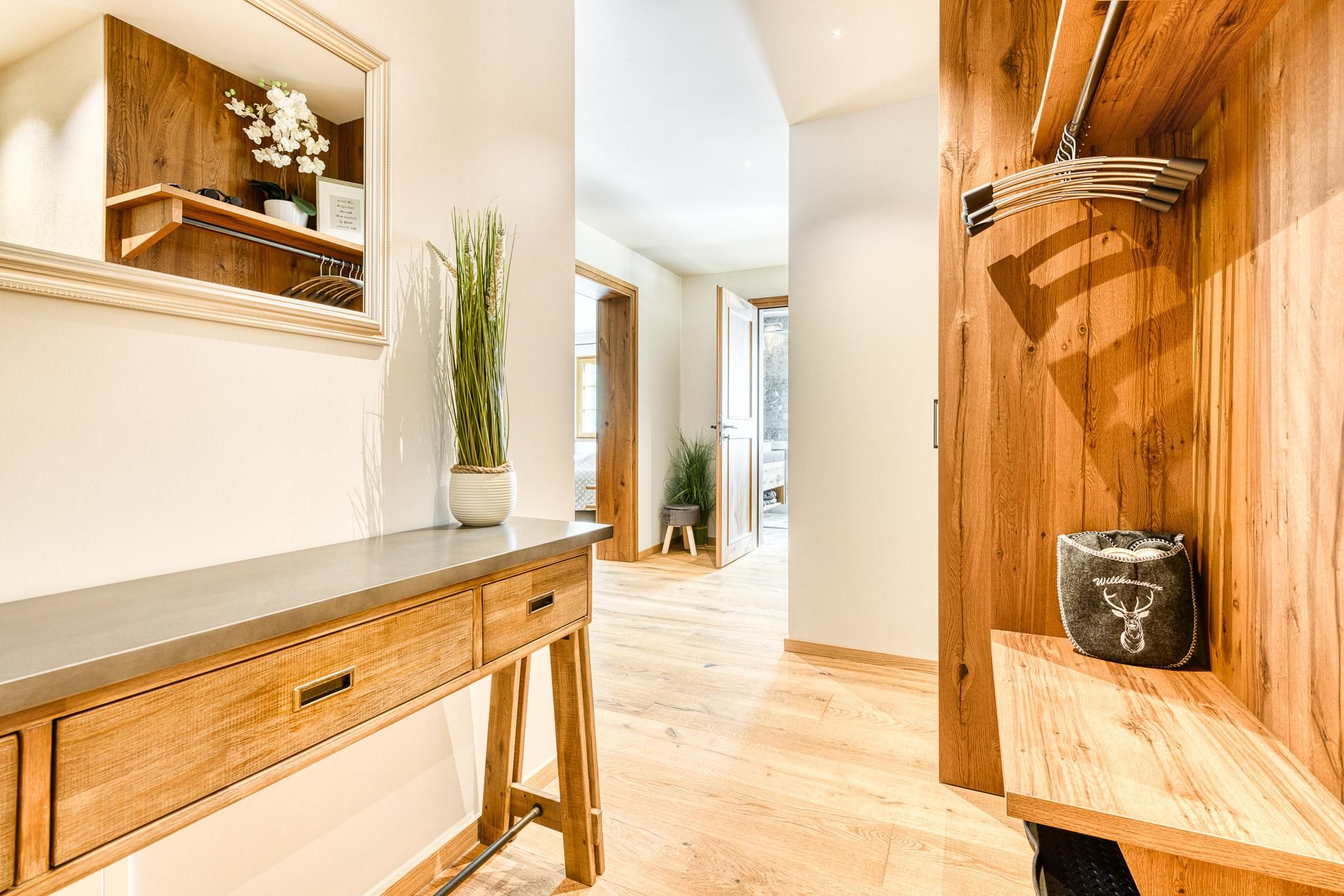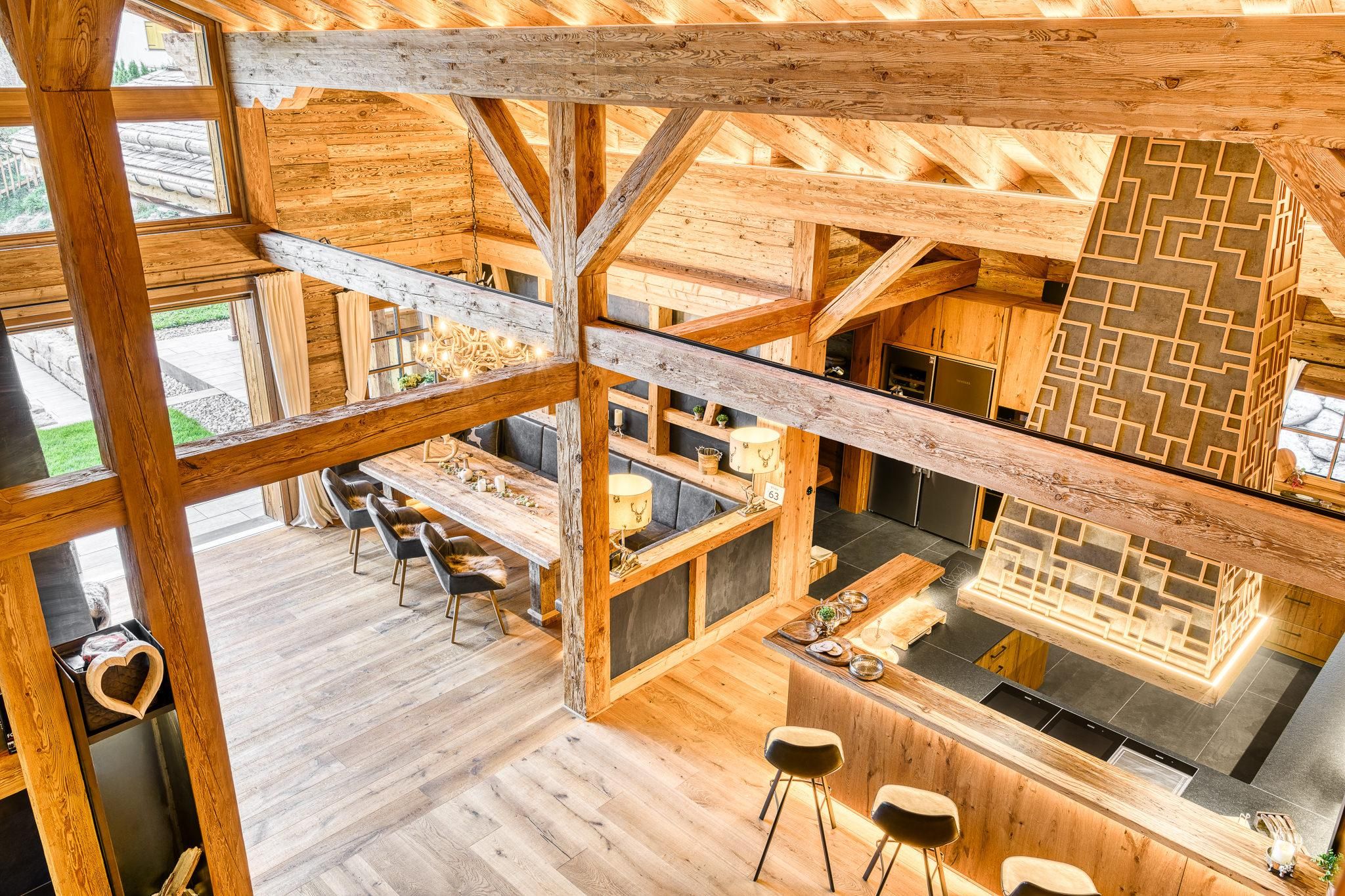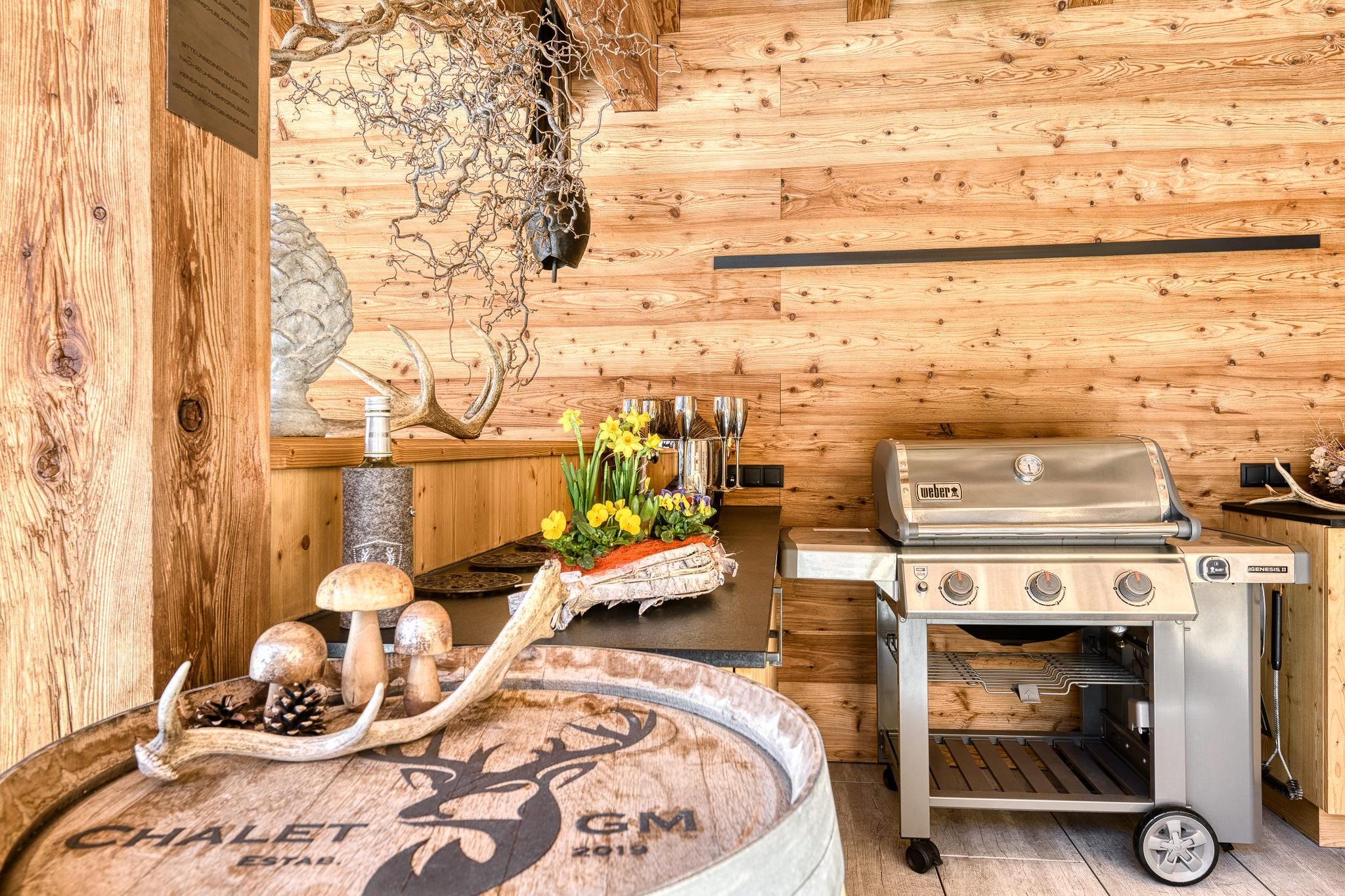 Das Chalet GM verteilt sich auf 3 Etagen. Im ersten Obergeschoss befindet sich das Herzstück des Hauses – der großzügige Wohnbereich mit offener Küche. Die Küche lässt keine Wünsche offen: inklusive Teppanyaki-Grillfläche, Dampfgarer, Bierzapfhahn und Schnapsbrunnen und vielem mehr – lasst euch überraschen!