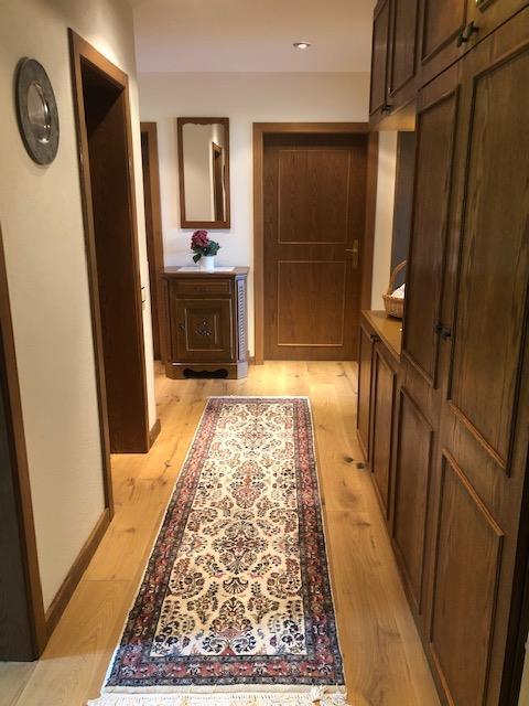 1 Doppelschlafzimmer plus ein Zweibettzimmer mit separaten Einzelbetten plus eine Ausziehcouch im Wohnzimmer, Badezimmer plus separates WC. Enspannen Sie zusätzlich im Untergeschoss nach einem Ski- oder Wandertag in unserer Sauna und im Whirlpool. Die Grünfläche vor dem Haus kann ebenfalls mitbenutzt werden. Zur Wohnung gehört auch ein Parkplatz vor dem Haus.