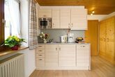 Der Wohnraum bietet Ihnen ein bequemes Sofa mit Blick zum Flachbild-TV. Hier können Sie sich nach einem erlebnisreichen Tag schön entspannen. Fürs leibliche Wohl sorgt die im Wohnraum integrierte Küchenzeile. Sie ist mit einem 2-Plattenherd, einer Mikrowelle, Toaster, Wasserkocher, einem Kühlschrank, einer Kaffeemaschine und reichlich Geschirr ausgestattet. Obwohl die Küchenzeile recht klein aussieht, bietet Sie auch eine Geschirrspülmaschine, die den Abwasch für Sie übernimmt. Die köstlichen Mahlzeiten können Sie am Esstisch oder auf dem Südbalkon zu sich nehmen. Genießen Sie vom Balkon aus den freien Blick auf die Bergwelt und auf das Tal.