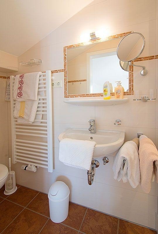 Das moderne Duschbad ist mit einer Fußbodenheizung, einem Fenster und einem Fön ausgestattet.