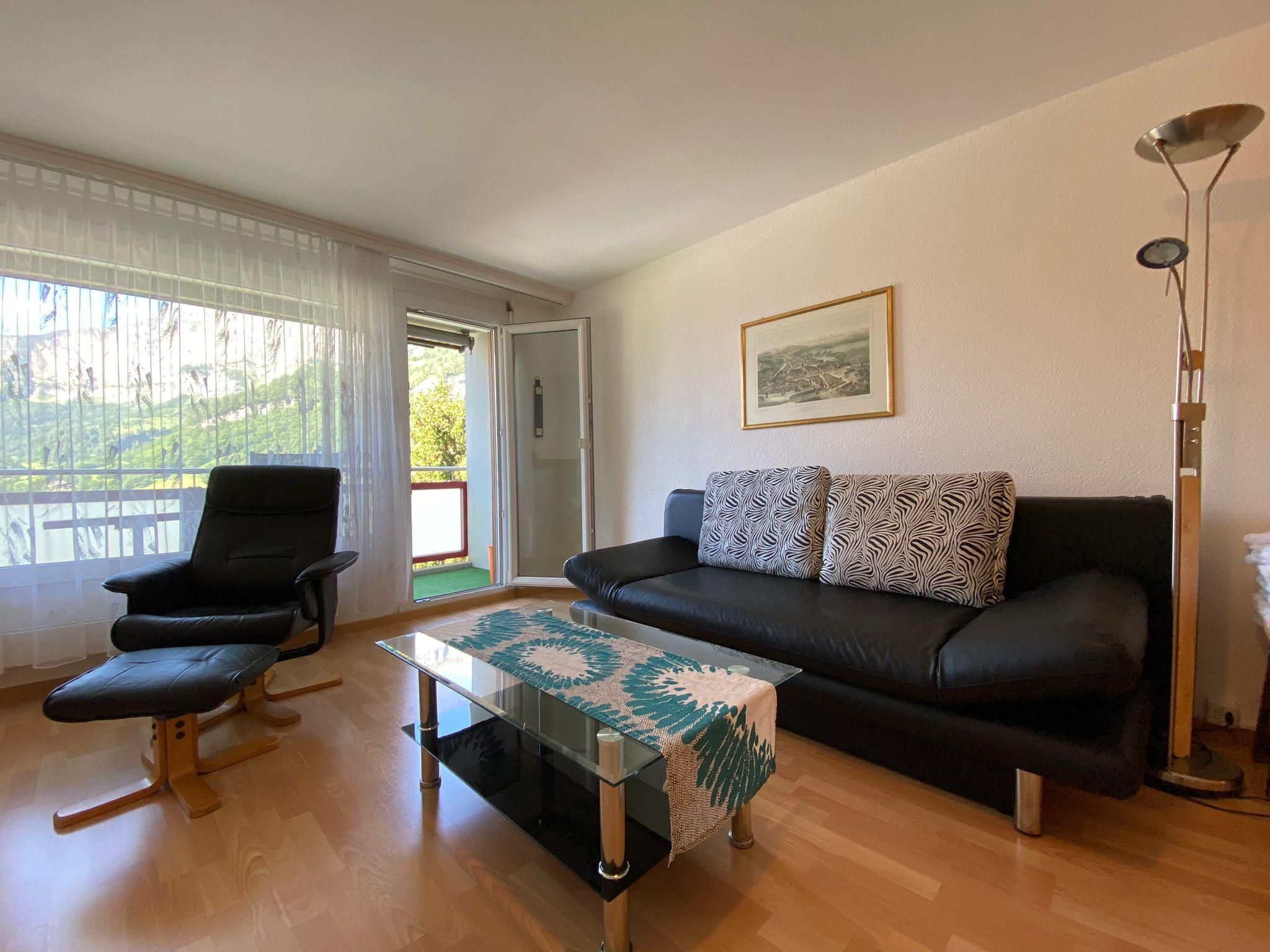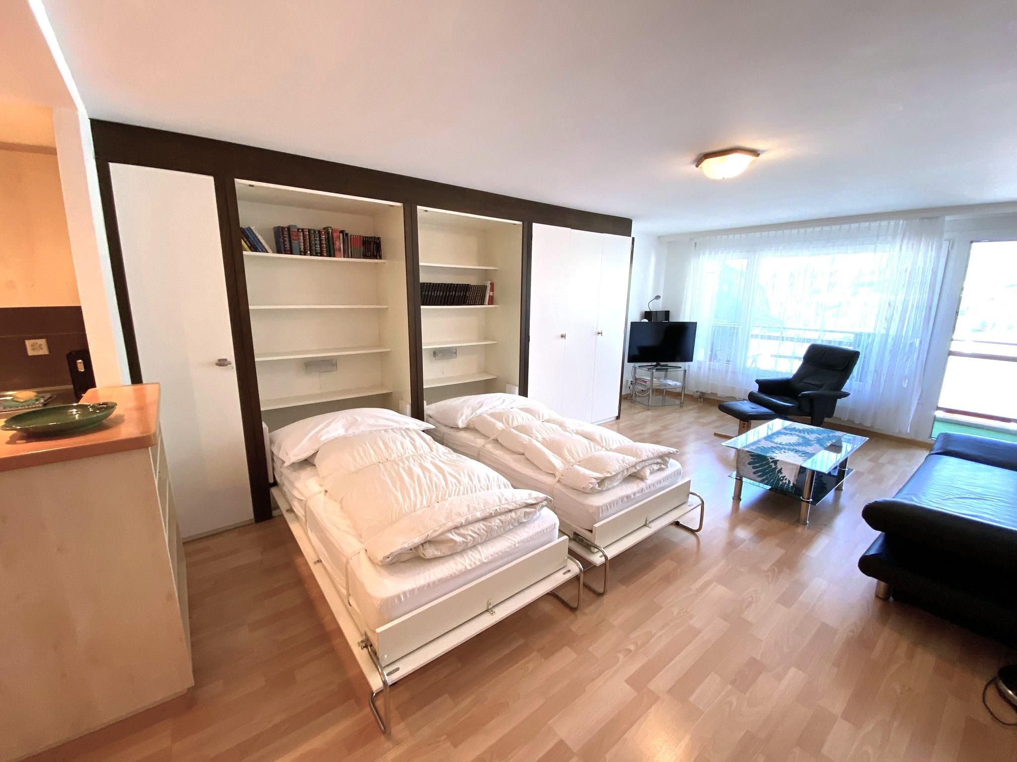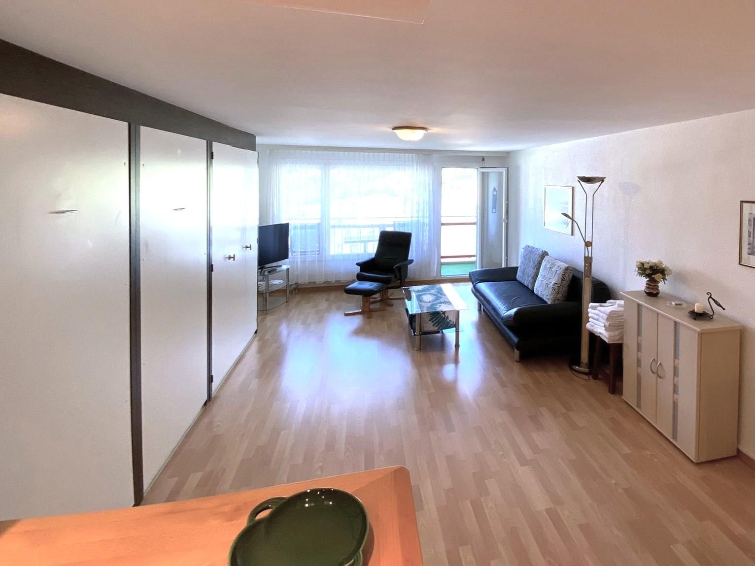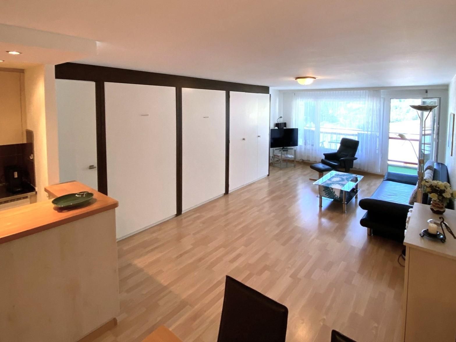 1-Zimmerwohnung: Wohn-/Esszimmer mit 2 Wandschrankbetten, neue offene Küche, Dusche/WC, Südbalkon, Telefon, Radio, TV, gratis W-Lan. Garage im Preis inbegriffen (geheizte Zufahrt). Torrentbahnen, Burgerbad & Alpentherme in der Nähe. Nichtraucherwohnung! Haustiere erlaubt.