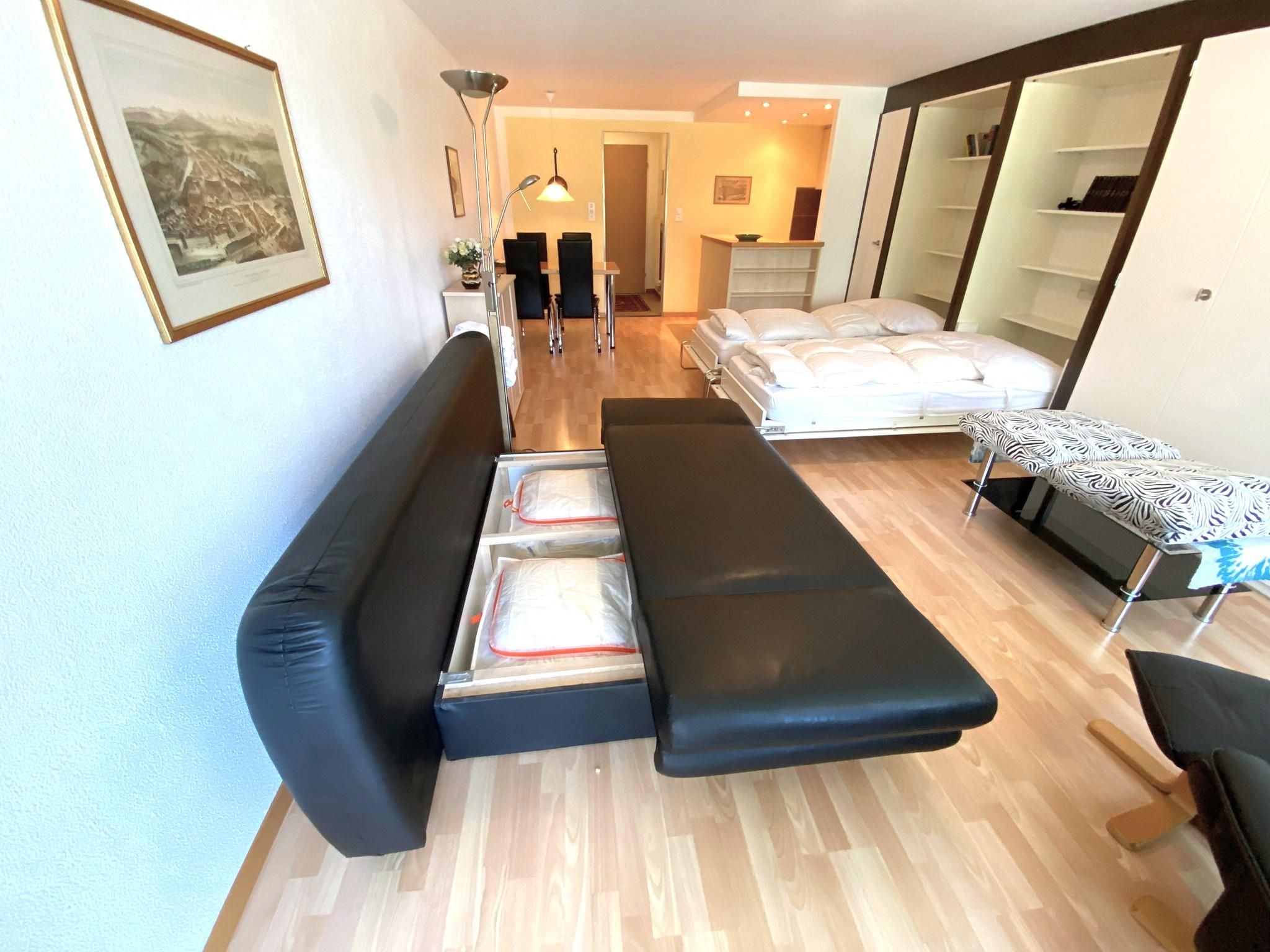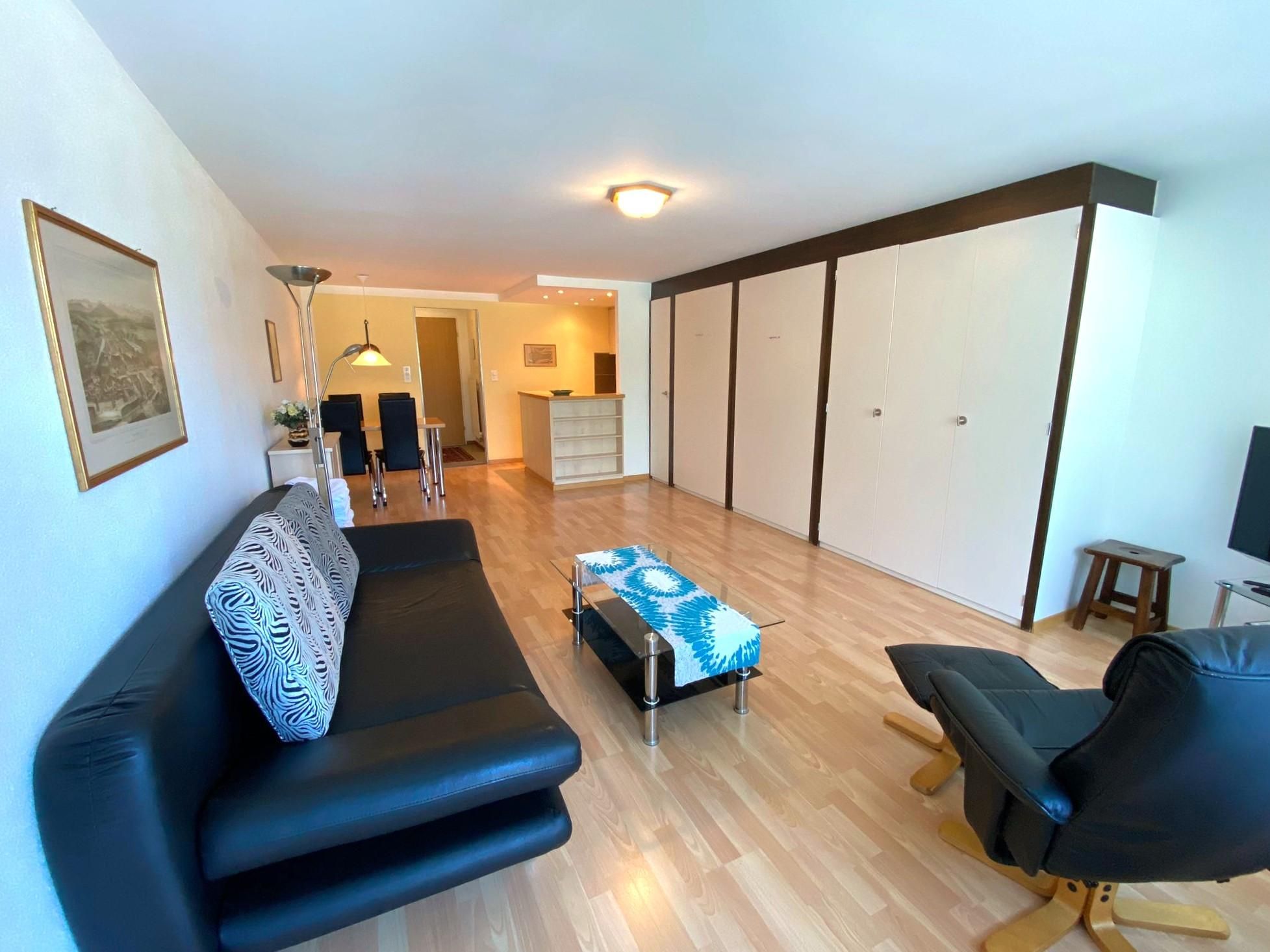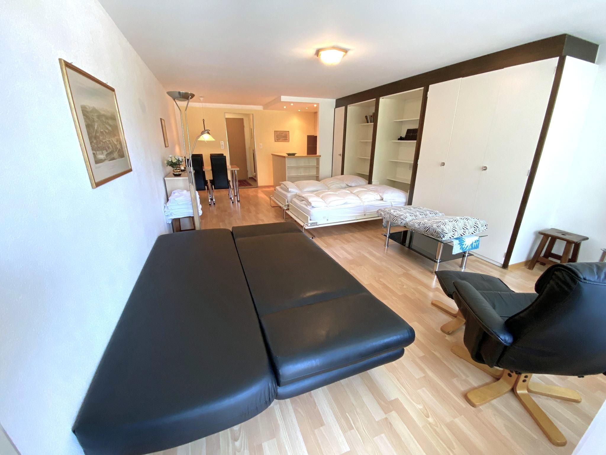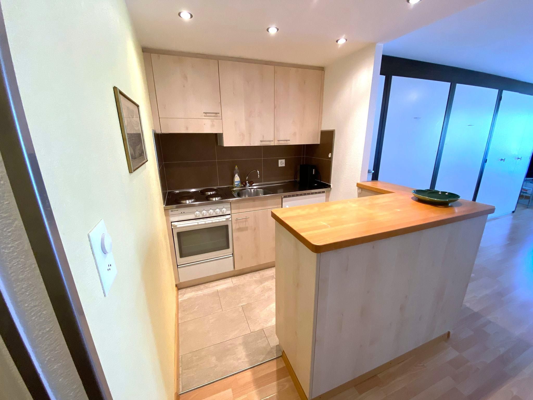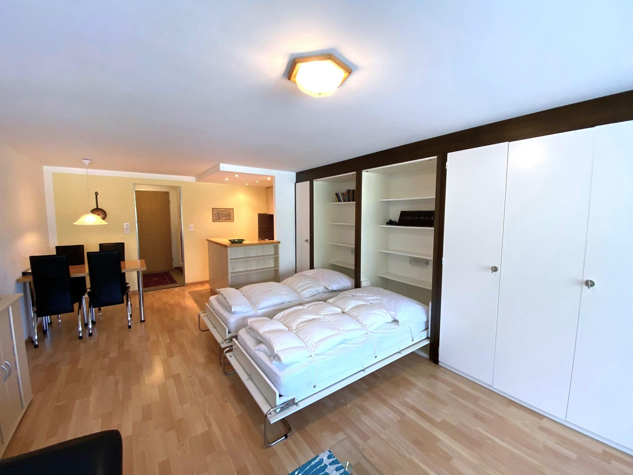 1-Zimmerwohnung: Wohn-/Esszimmer mit 2 Wandschrankbetten, neue offene Küche, Dusche/WC, Südbalkon, Telefon, Radio, TV, gratis W-Lan. Garage im Preis inbegriffen (geheizte Zufahrt). Torrentbahnen, Burgerbad & Alpentherme in der Nähe. Nichtraucherwohnung! Haustiere erlaubt.
