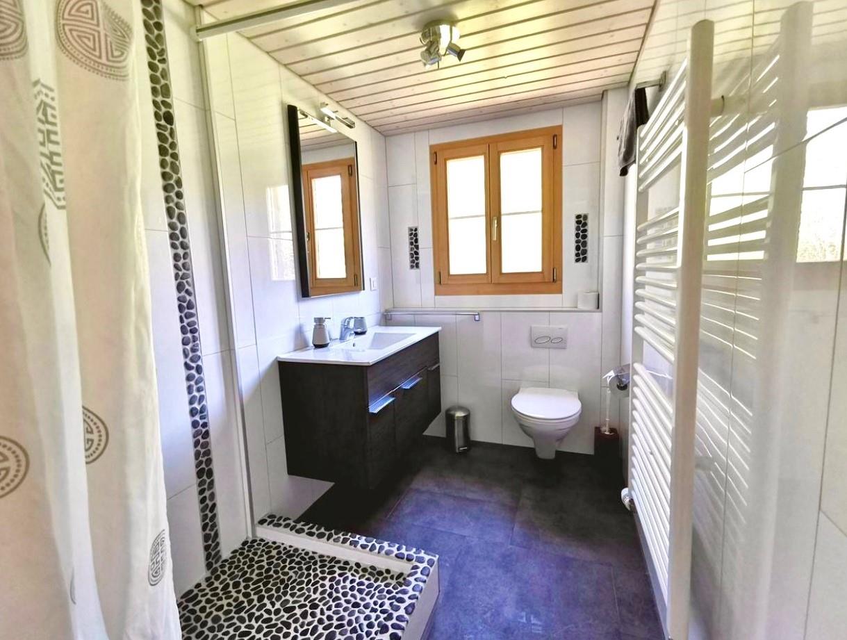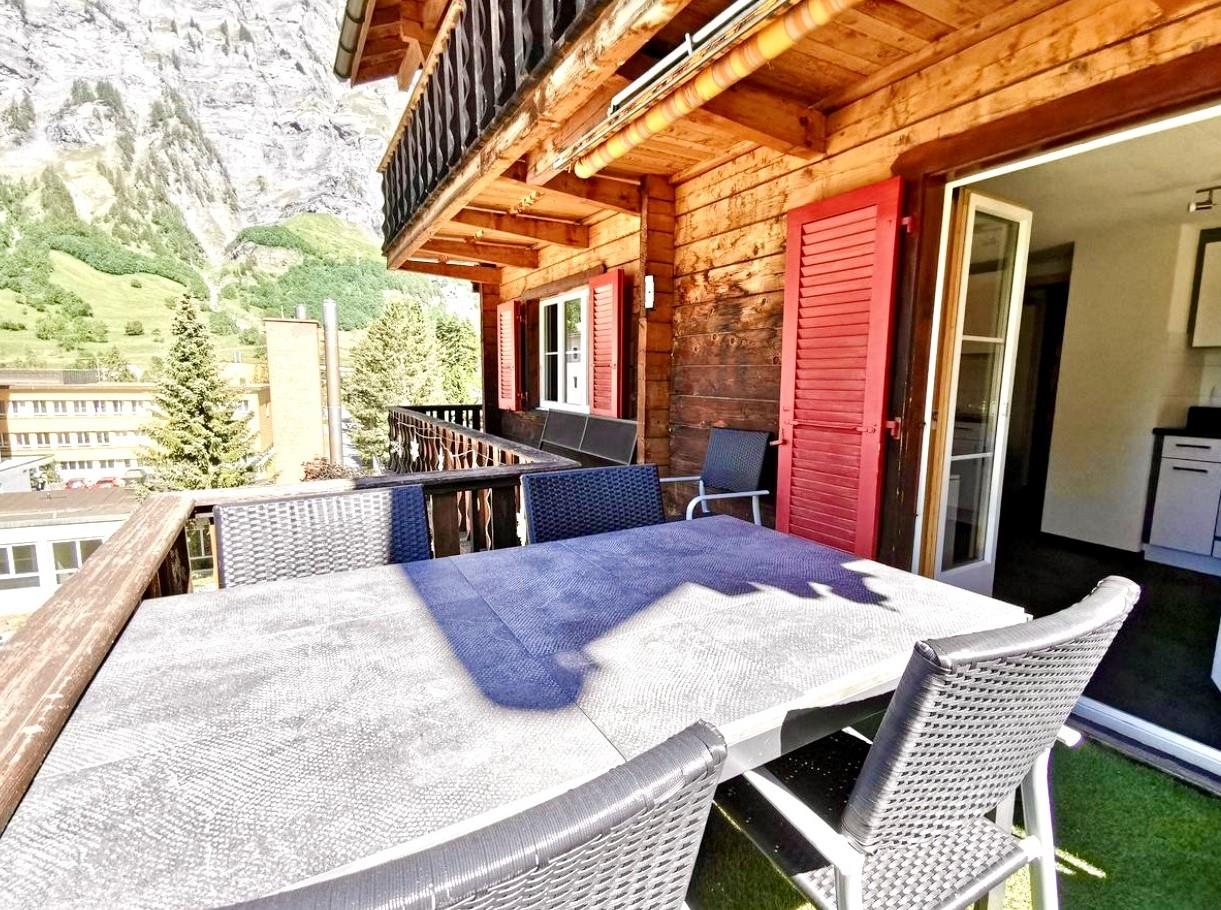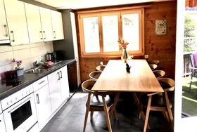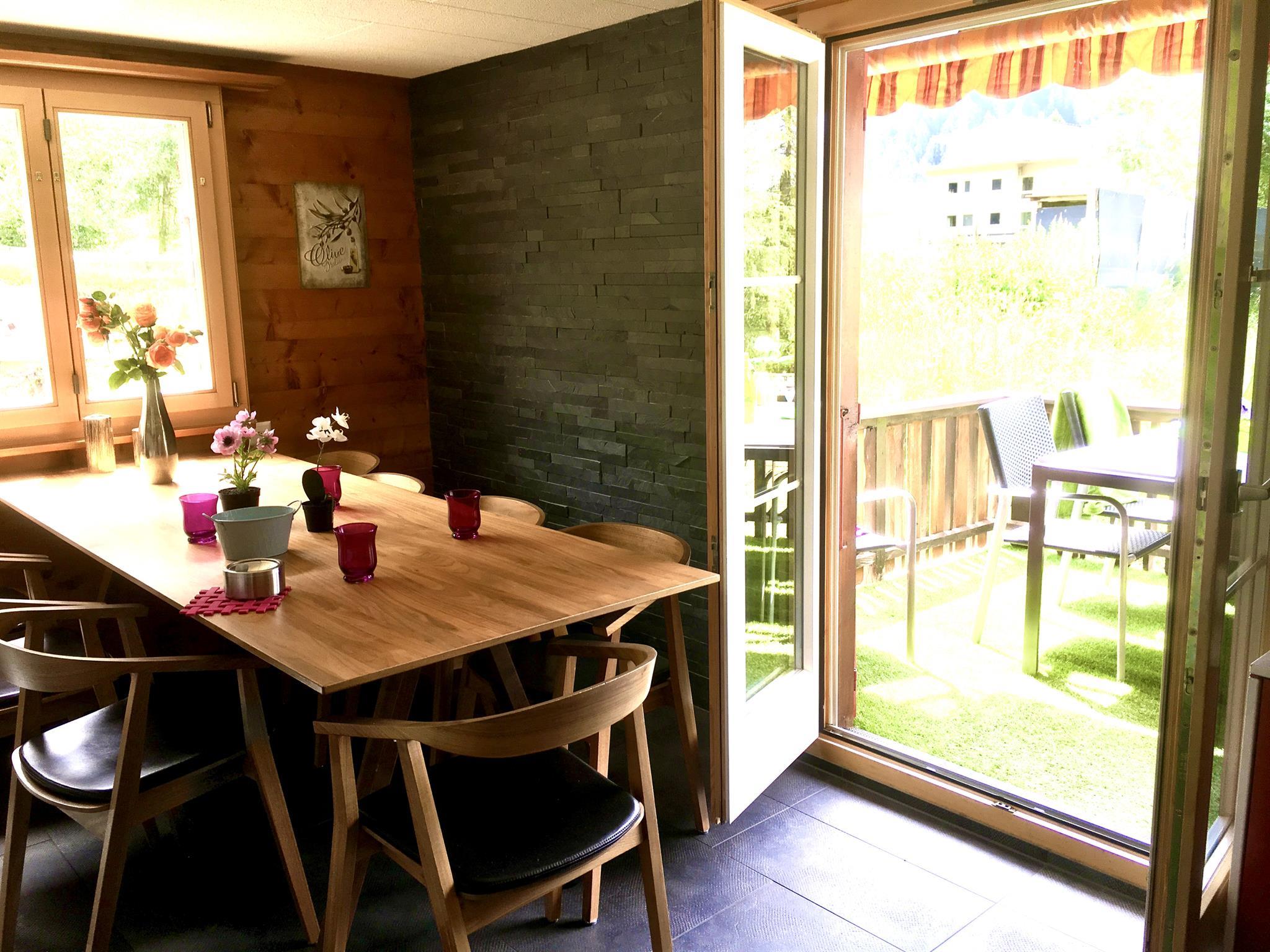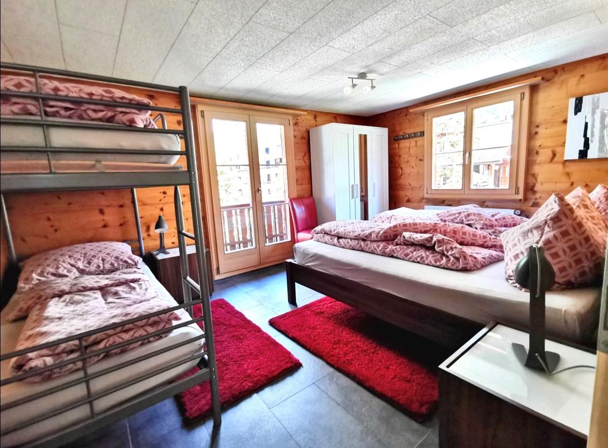 3-Zimmerwohnung: Neu renoviert, separate grosse Küche mit Esstisch, Geschirrspüler und Nespresso-Kaffeemaschine, 1 Schlafzimmer mit 1 Doppelbett, 1 Schlafzimmer mit 1 Doppelbett und 1 Etagenbett, 1 x Dusche/WC, 1 x separates WC, Wohnzimmer mit Doppel-Schlafsofa, TV, Radio, gratis WiFi, grosser Süd-Balkon. Zusätzlich Gartensitzplatz mit Grill, Liegestühle, Sandkasten ect. zum benutzen. Aussenparkplatz ist direkt beim Vermieter zu mieten. Nichtraucherwohnung.