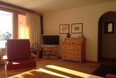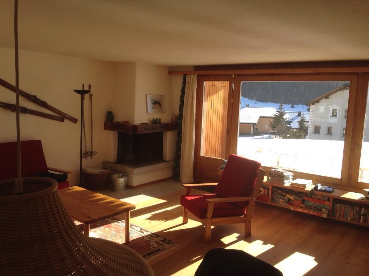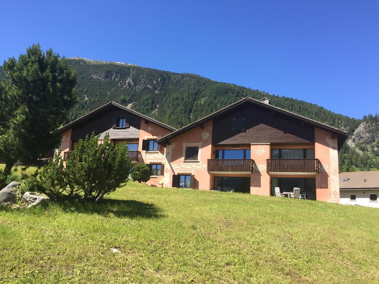 Die Wohnung hat eine schöne Aussicht auf die „La Margna“. Ganztags scheint die Sonne auf die Gartenterrasse.