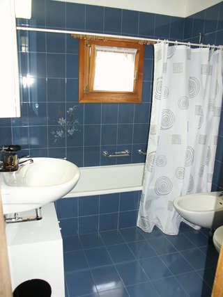 Schlafzimmer 1: Das Schlafzimmer verfügt über ein Doppelbett (160cm), einen geräumigen 3-türigen Schrank und ein integriertes Badezimmer mit Lavabo, Badewanne mit Duschvorhang, WC, Bidet und ein Fenster.