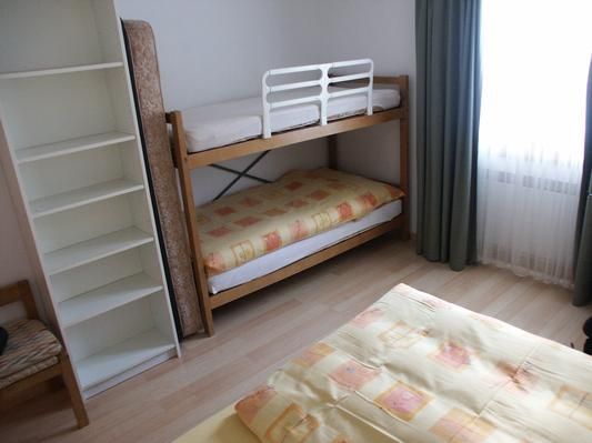 Schlafzimmer 2: Dieses Schlafzimmer verfügt über ein Doppelbett (160cm) sowie ein Kajütenbett für 2 Kinder.