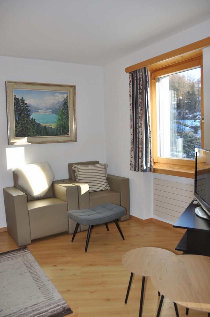 Schöne gemütliche, gut geschnittene 1 1/2 Zimmer-Wohnung für maximal 2 Perosnen im 1. Stock mit 43m2. Zentrale und ruhige Lage mitten im Herzen von Sils Maria,Wohn- und Esszimmer mit Flachbild-Fernseher, angegliedertes Schlafzimmer, Bad mit Wanne und WC, Haartrockner, offene Küche mit Geschirrspüler, Backofen, 4 Herdplatten, Fondueset, Stabmixer, Toaster, Wasserkocher, und komplett ausgestattet. Nespresso Kaffeemaschine. Balkon mit Mobiliar und Blick in Richtung Süden. Grossartiger Blick aufs Dorf und auf Furtschellas und die umliegenden Berge; W-Lan-Anschluss inklusive. Im Garten steht ein grosser Tisch und Bänke zur allgemeinen Benutzung zur Verfügung; Waschmaschine und Trockner im Untergeschoss zur Allgemeinbenuzung und ebenfalls kostenlos. Sowie im Sommer: die Benutzung sämtlicher Oberengadiner Bergbahnen und des öffentlichen Verkehrs (Bus und Zug) im Oberengadin und im Bergell inklusive. Im Winter: ÖV inklusive (gültig ab der 2. Nacht)