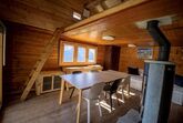 Es gibt ein großes Schlafzimmer, ein Zimmer mit einem Etagenbett, ein Doppelbett im Wohnzimmer und ein Zwischengeschoss für mehrere Personen.