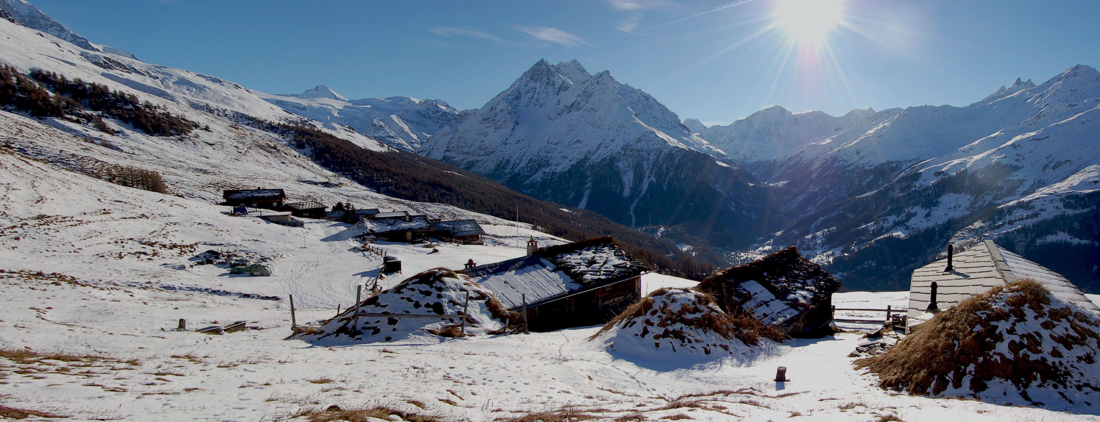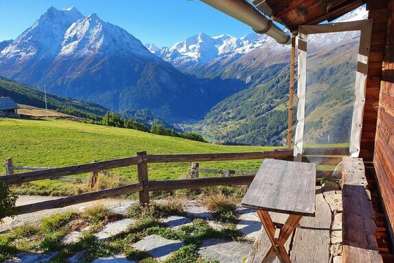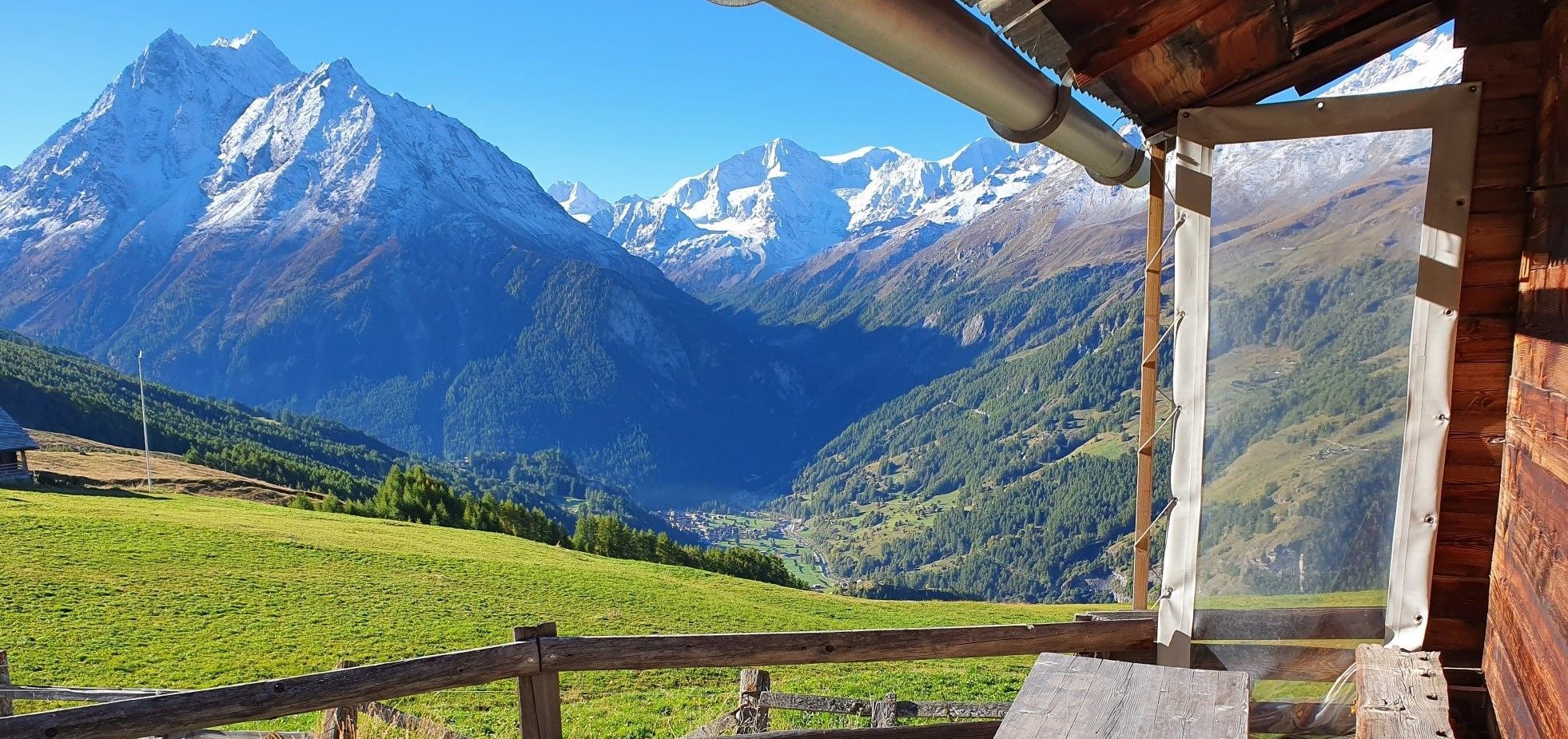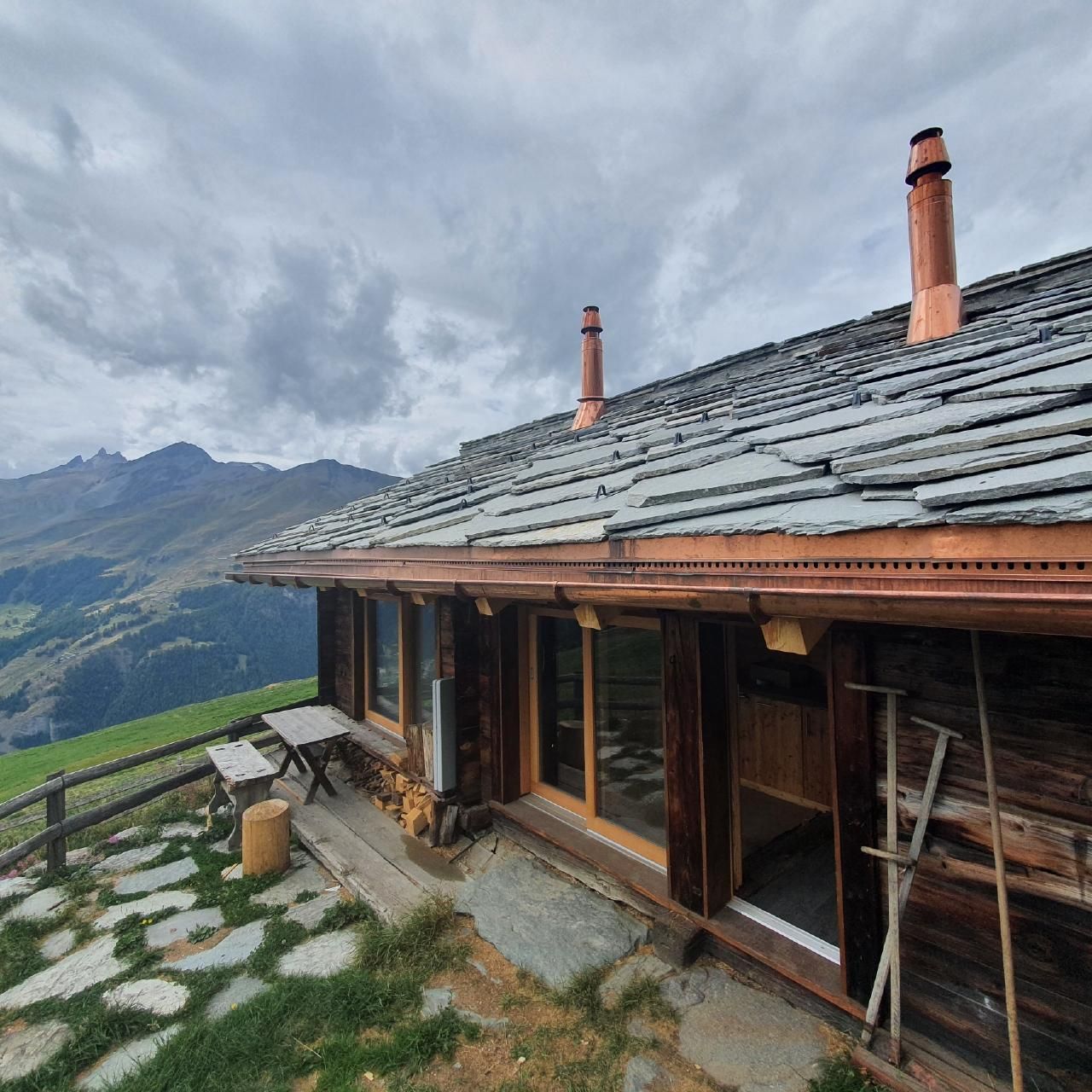Das 2023 komplett renovierte Maiensäss befindet sich auf 2100 m Höhe, gegenüber den höchsten Gipfeln der Walliser Alpen (Dent-Blanche, Dent d'Hérens) und den Gletschern des Haut val d'Hérens.