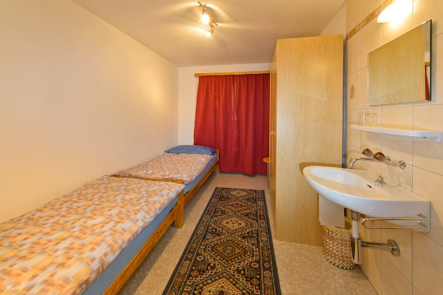 Die 3-Zimmerwohnung liegt im 1. Stock und verfügt über 2 Doppelzimmer, Wohnzimmer mit TV/Radio und Internet. Grosse Wohnküche, Südbalkon. WC/Bad/Dusche. im Wohnzimmer Schlafsofasystem Bretagne ( Liegefläche 160x200cm ).