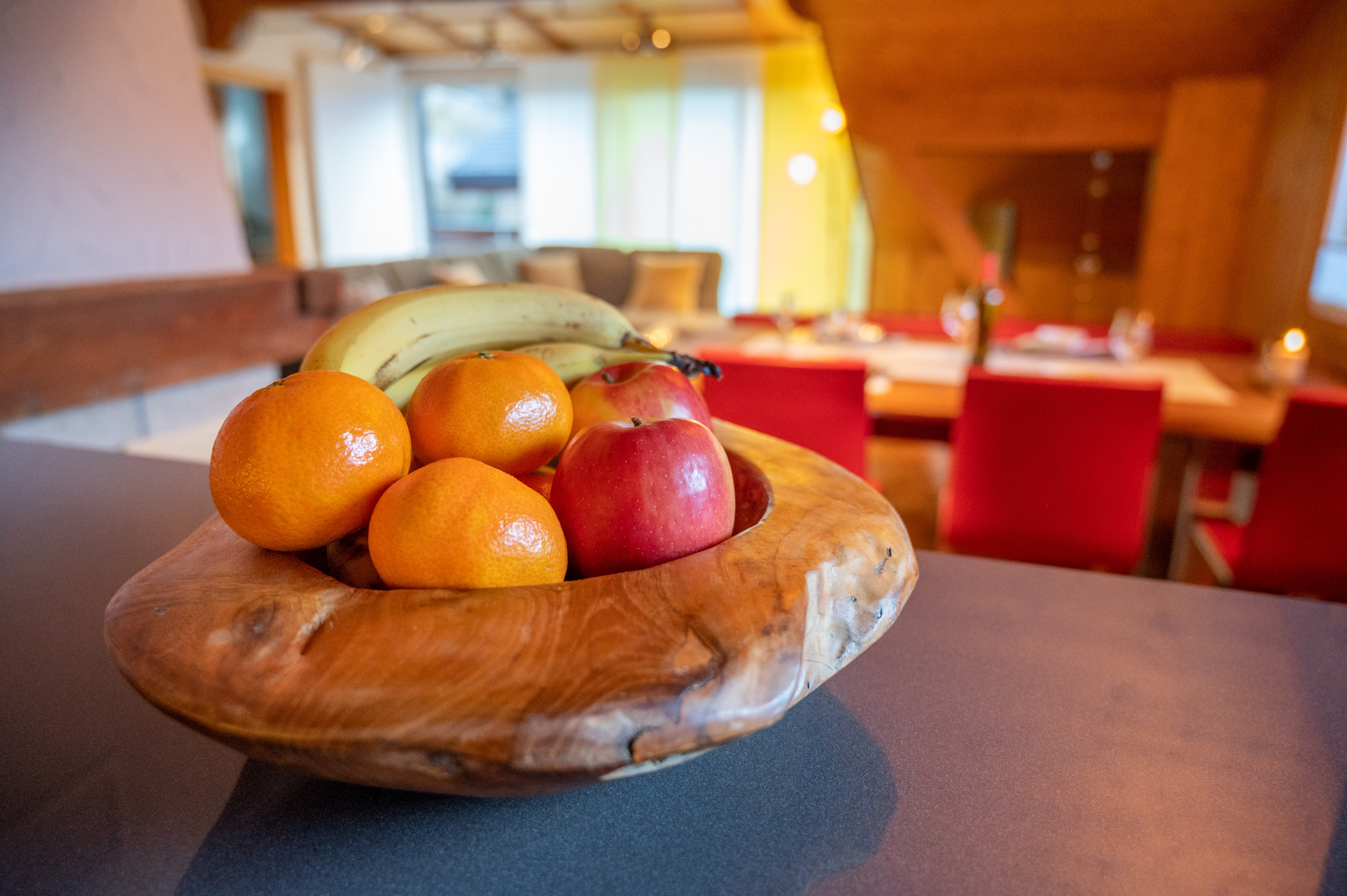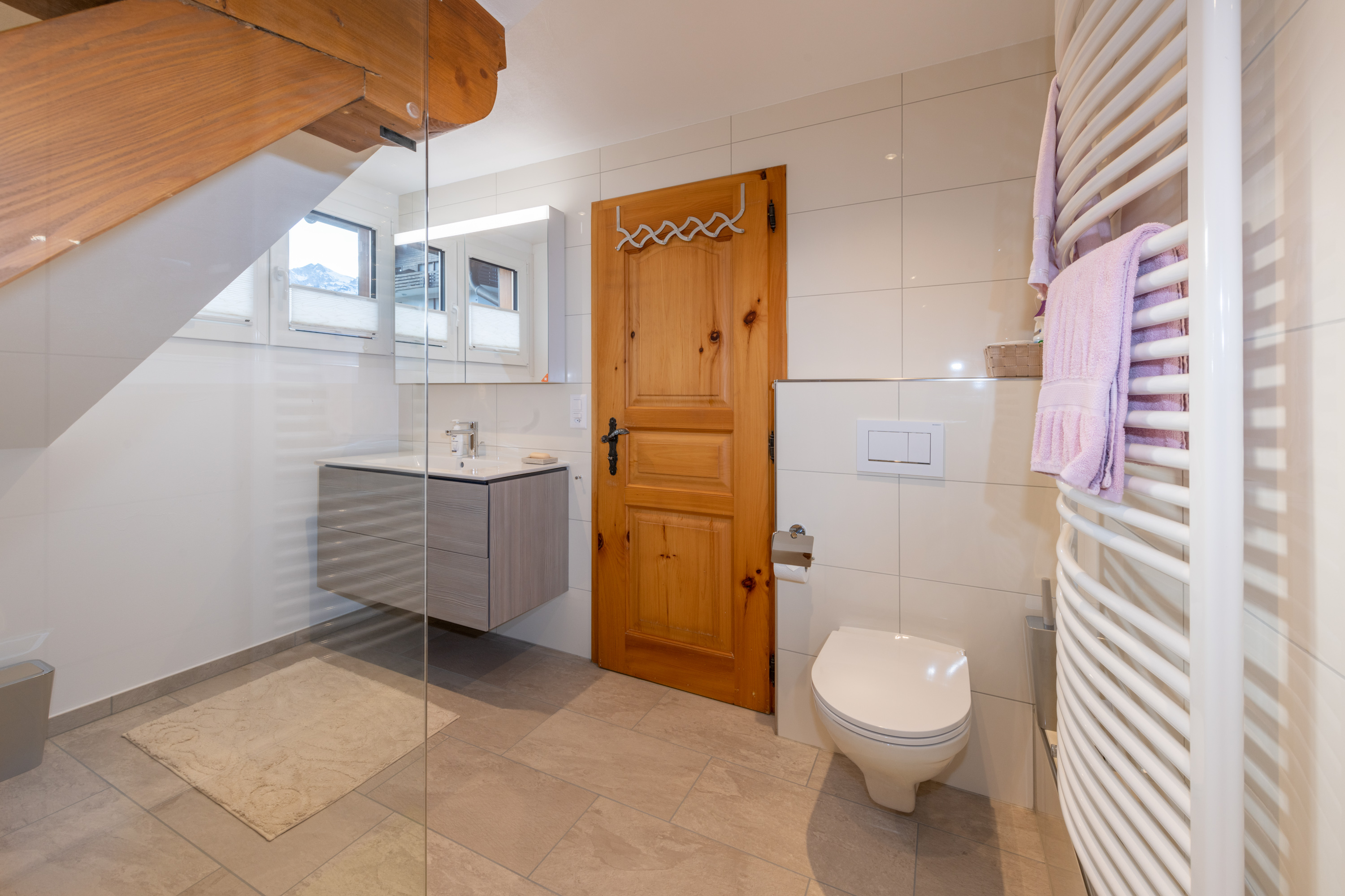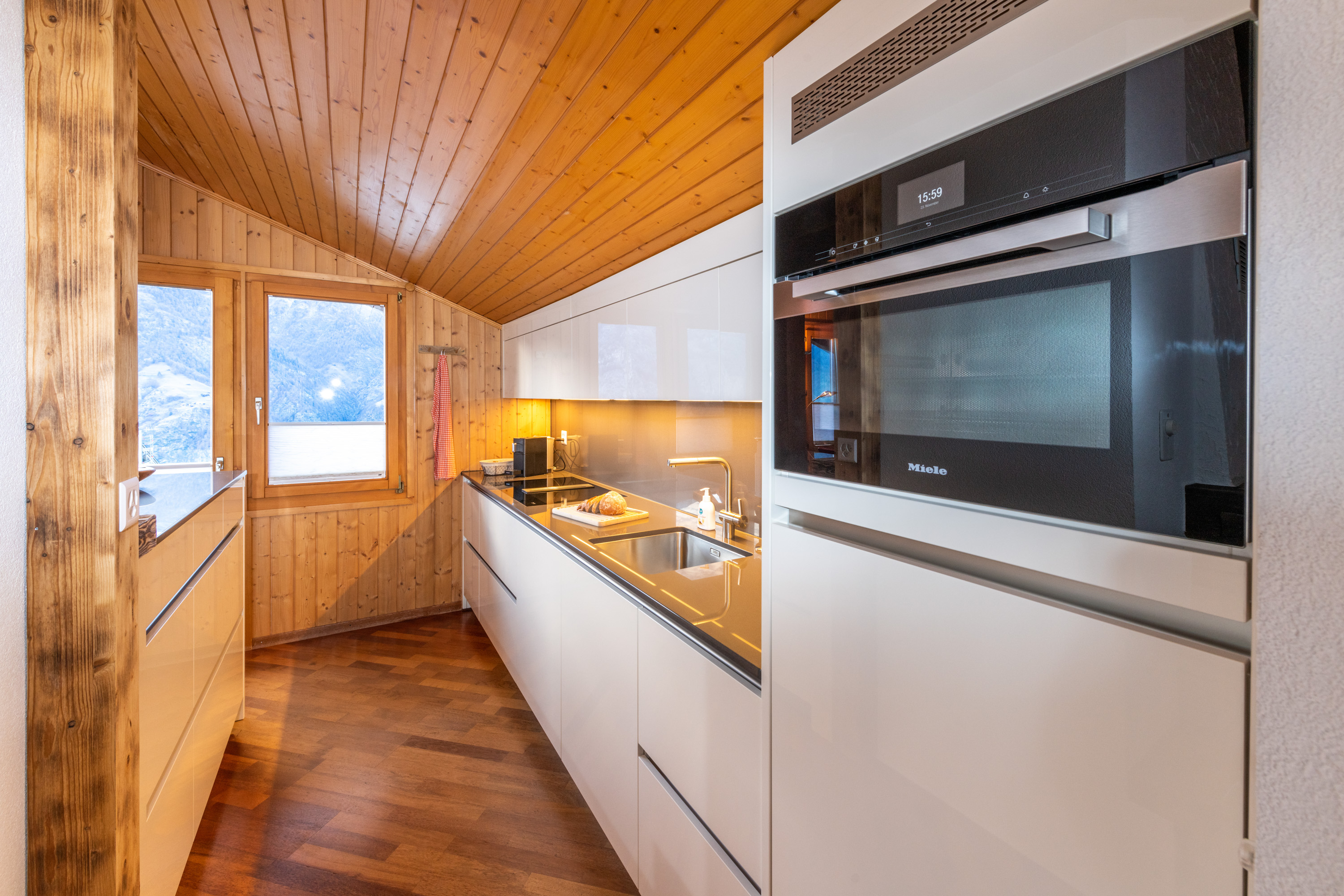 Die schöne 3-Zimmer Dachgeschosswohnung im Hause Pumuckl im 3. Stock mit 2 Doppelbetten, Bettsofa und zusätzlichem Babybett auf Anfrage verfügt über zwei Balkone mit atemberaubendem Bergblick und Sitzmöglichkeiten, kostenloses WLAN und einen Gästeparkplatz sowie eine voll ausgestattete Küche mit Geschirrspüler, Mikrowelle/Steamer, Backofen, Kaffeemaschine inklusive Kapseln, einem Wasserkocher, Fondue- & Raclettegeschirr und einem Hochstuhl auf Anfrage. Im lichtdurchfluteten Wohnzimmer befindet sich ein Smart Flachbild-Kabel TV mit DVD-Player, die gemütliche Sofa-Lounch, welche bei Bedarf als Bettsofa benutzt werden kann, sowie Spielzeug für Kinder. Das Cheminée im Herzen des Apartments sorgt ausserdem für eine gemütliche und heimelige Atmosphäre. Im Badezimmer erwartet Sie eine grosszügige Regendusche/WC, ein Haartrockner und genügend Stauraum. Die Wohnung eignet sich am besten für vier Erwachsene oder Familien mit zwei bis drei Kindern. Es ist eine Nichtraucherwohnung (Rauchen auf den Balkonen gestattet)Vielen Dank für Ihr Interesse und bis bald in Grächen - im Haus Pumuckl ??