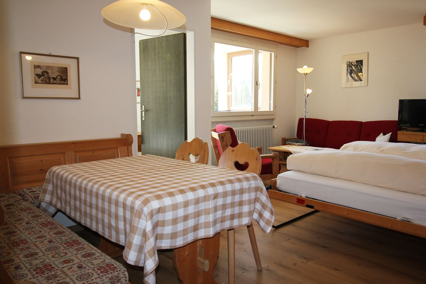 Unsere Gäste können eine grosszügige Infrastruktur nutzen – mit W-Lan in der ganzen Anlage, einem kleinen Getränkekiosk mit Brötchenservice, ein geheiztes Hallenbad (10.5 x 5 Meter), Privat-Sauna (kostenpflichtig), ein Kinderspielzimmer, ein Tischtennis-Raum, sowie einer gemütlichen Lounge mit einer integrierten Bibliothek. Im Haus B steht Ihnen eine Münz-Waschmaschine und ein Wäschetrockner auf Vorreservation zur Verfügung. Im Aussenbereich befindet sich ein neuer Kinderspielplatz mit Kletterturm und Schaukel. Ebenfalls stehen Nebenräume für die Skier, Skischuhe, Schlitten und Wanderschuhe zur Verfügung.