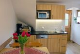 Wohnzimmer mit neuer Küchenzeile und Spülmaschine,