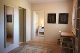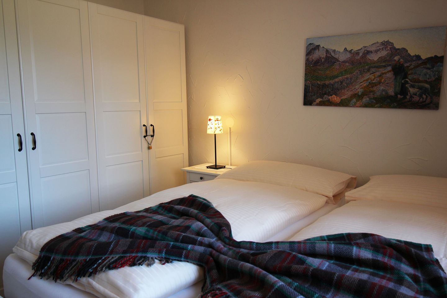Hübsche, gemütliche 2 1/2 Zimmer Wohnung in der 1.Etage gelegen, einem Schlafzimmer mit einem Doppelbett, einem Wohnzimmer mit einem Ausziehsofa für 2 Personen, einem Esstisch, einer Küche mit Geschirrspülmaschine und Mikrowellenherd, Bad/WC und einem verglasten Balkon Richtung Süden. Radio und CD Player, Fernseher und Telefon, kostenloses W-LAN sind ebenfalls in der Wohnung enthalten.