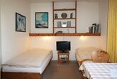 Hübsches, gemütliches Studio in der 1. Etage gelegen, mit zwei einzelnen Betten, einem Esstisch, einer kleinen Kochnische sowie Dusche/WC. Radio und CD Player, Fernseher und Telefon, kostenloses W-LAN sind ebenfalls in der Wohnung enthalten.