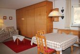 Hübsche, gemütliche 1 ½ Zimmer Wohnung in der 1.Etage gelegen, einem kleinen abgetrennten Schlafbereich mit zwei separaten Betten, einem Wohnzimmer mit zwei Schrankbetten, einem Sofa, einem Esstisch, einer Küche mit Geschirrspülmaschine, Bad/WC und einem kleinen Balkon Richtung Westen. Radio und CD Player, Fernseher und Telefon, kostenloses W-LAN sind ebenfalls in der Wohnung enthalten.