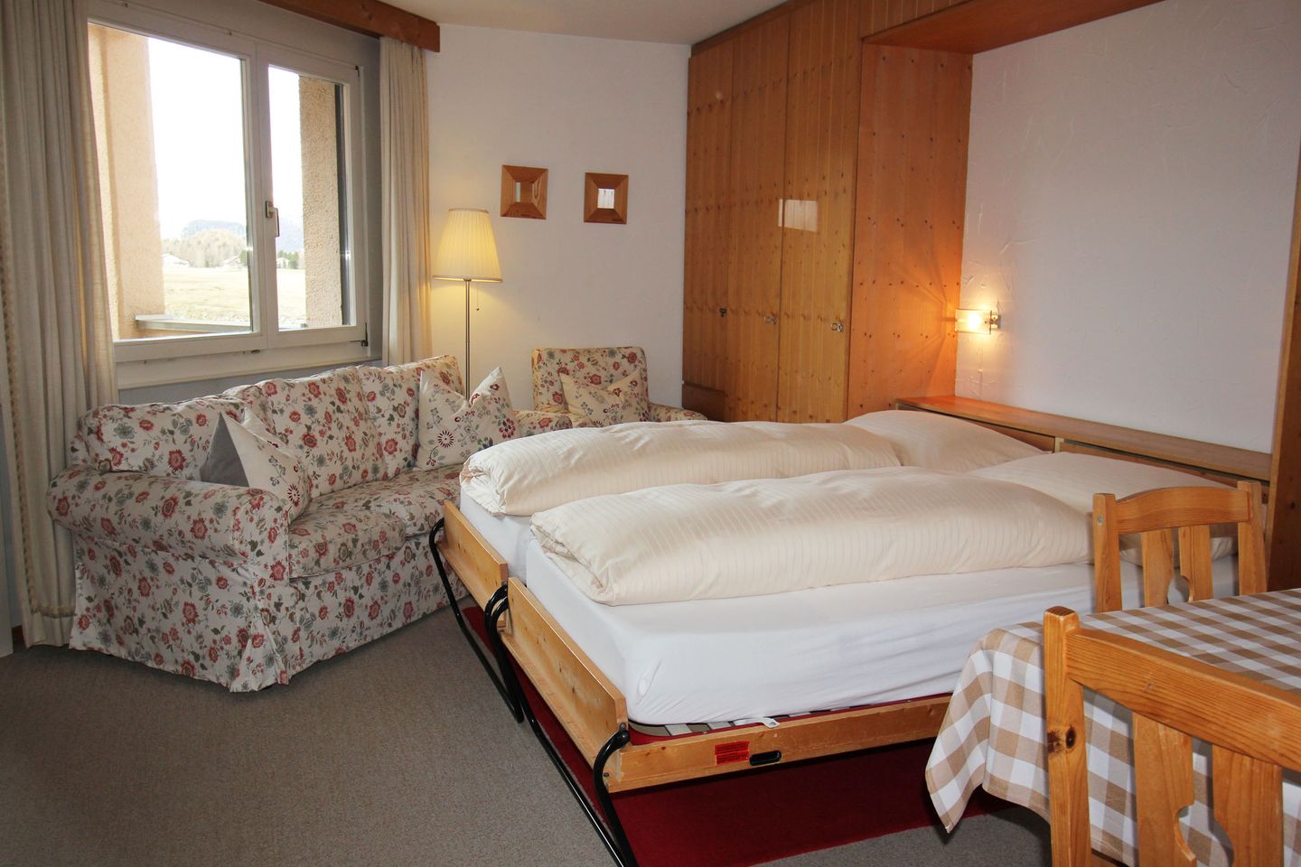 Unsere Gäste können eine grosszügige Infrastruktur nutzen – mit W-Lan in der ganzen Anlage, einem kleinen Getränkekiosk mit Brötchenservice, ein geheiztes Hallenbad (10.5 x 5 Meter), Privat-Sauna (kostenpflichtig), ein Kinderspielzimmer, ein Tischtennis-Raum, sowie einer gemütlichen Lounge mit einer integrierten Bibliothek. Im Haus B steht Ihnen eine Münz-Waschmaschine und ein Wäschetrockner auf Vorreservation zur Verfügung. Im Aussenbereich befindet sich ein neuer Kinderspielplatz mit Kletterturm und Schaukel. Ebenfalls stehen Nebenräume für die Skier, Skischuhe, Schlitten und Wanderschuhe zur Verfügung.