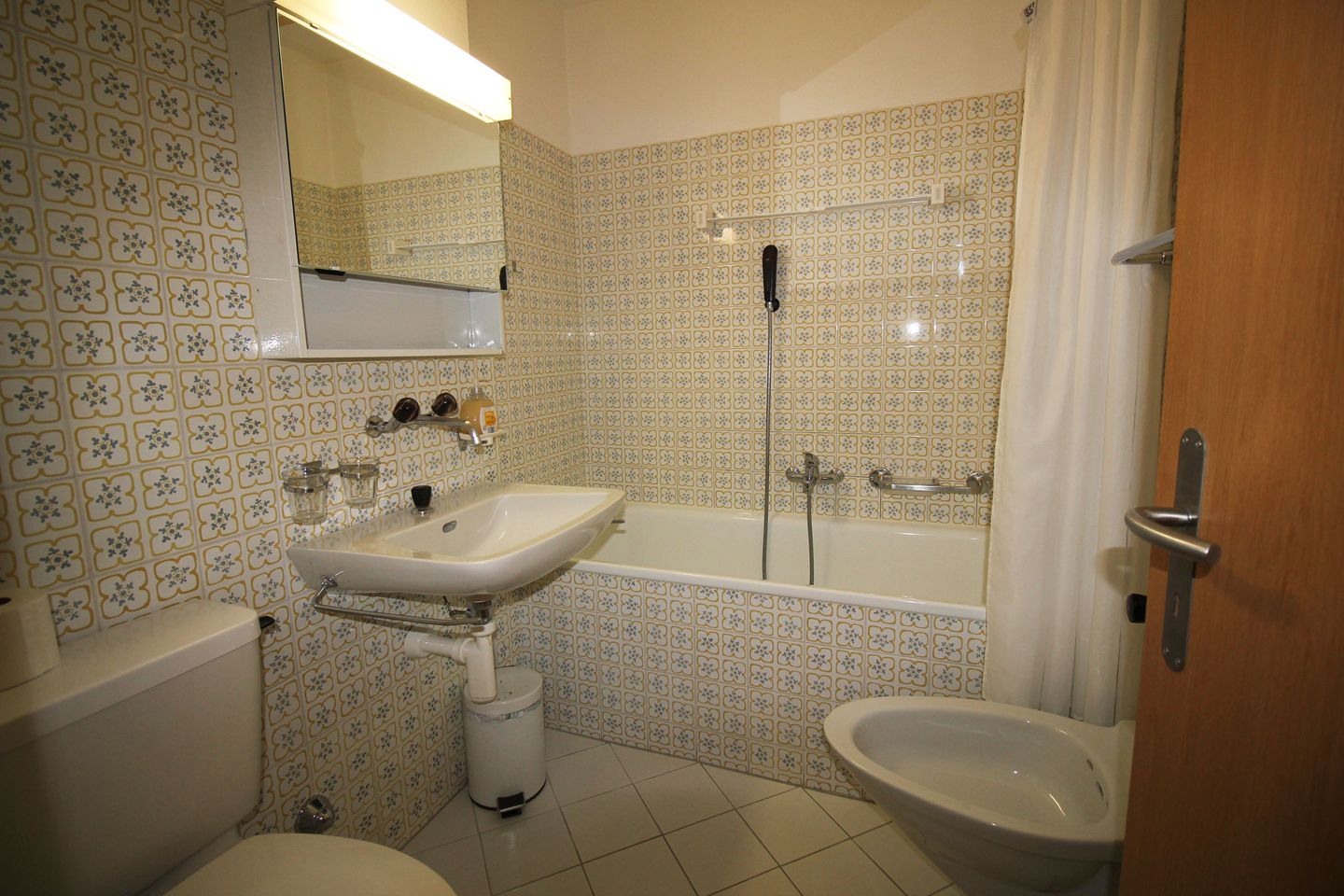 Hübsche, gemütliche 1 ½ Zimmer Wohnung im Hochparterre gelegen, mit einem kleinen Schlafzimmer mit zwei separaten Betten, einem Wohnzimmer mit zwei Schrankbetten, einem Sofa, einem Esstisch, einer Küche mit Geschirrspülmaschine, Bad/WC und einem kleinen Balkon Richtung Westen. Radio und CD Player, Fernseher und Telefon, kostenloses W-LAN sind ebenfalls in der Wohnung enthalten.