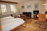 Gemütliche 2 Zimmer Wohnung in der 2.Etage gelegen, einem Schlafzimmer mit zwei separaten Betten, einem Wohnzimmer mit zwei Schrankbetten, einem Sofa, einem Esstisch, einer Küche sowie Badewanne/WC. Radio und CD Player, Fernseher und Telefon, kostenloses W-LAN sind ebenfalls in der Wohnung enthalten.