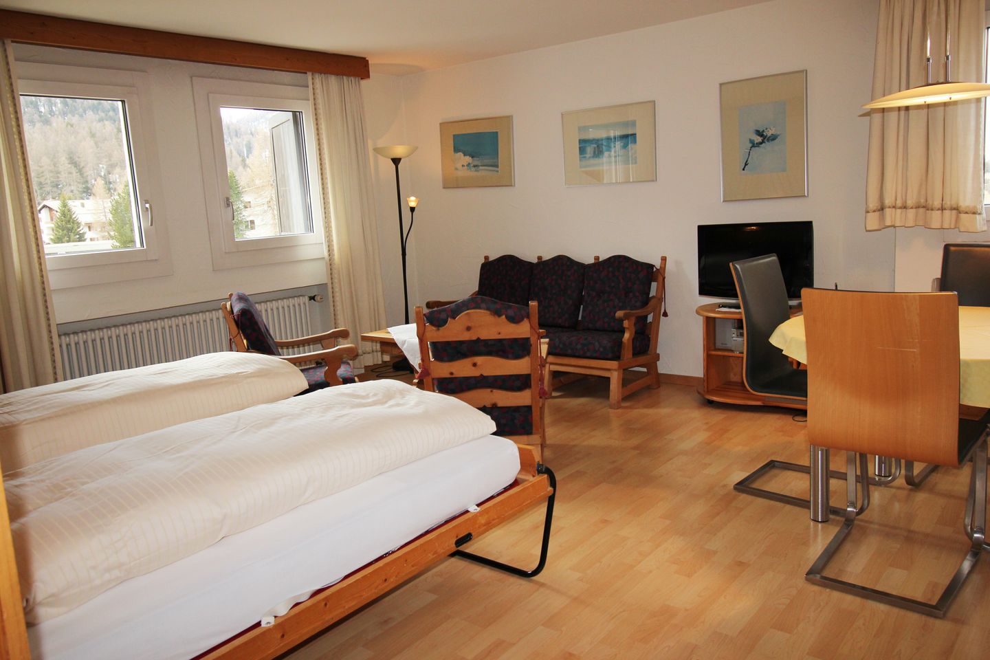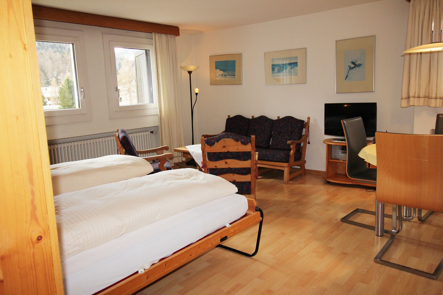 Unsere Gäste können eine grosszügige Infrastruktur nutzen – mit W-Lan in der ganzen Anlage, einem kleinen Getränkekiosk mit Brötchenservice, ein geheiztes Hallenbad (10.5 x 5 Meter), Privat-Sauna (kostenpflichtig), ein Kinderspielzimmer, ein Tischtennis-Raum, sowie einer gemütlichen Lounge mit einer integrierten Bibliothek. Im Haus B steht Ihnen eine Münz-Waschmaschine und ein Wäschetrockner auf Vorreservation zur Verfügung. Im Aussenbereich befindet sich ein neuer Kinderspielplatz mit Kletterturm und Schaukel. Ebenfalls stehen Nebenräume für die Skier, Skischuhe, Schlitten und Wanderschuhe zur Verfügung.