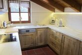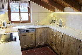 Wohnzimmer mit neuem Kachelofen, gemütliche Essecke, Wohnbereich mit neuer komfortabler Schlafcouch, separate neue Küche mit Spülmaschine, 4-Platten-Ceranfeld und Backrohr, 1 sep. neues Schlafzimmer aus Zirbenholz,