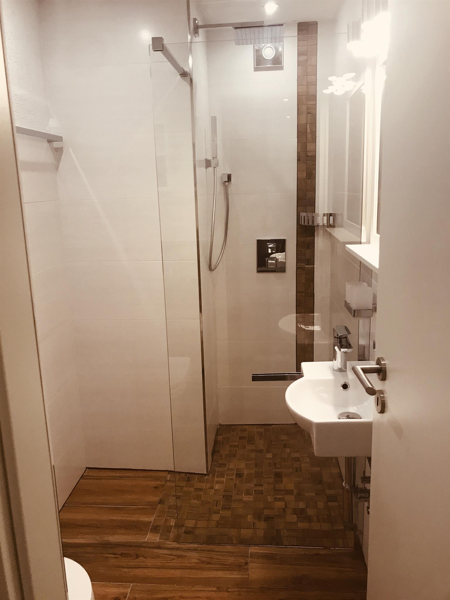 Dusche, WC, Waschtisch